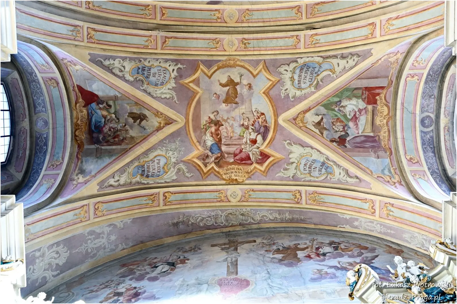 Fotografowanie tych wszystkich sklepień kościoła było dla mnie czymś niezwykłym. W głębi serca odczuwałem radość, że nie tylko na swoich fotografiach będę mógł ukazać bogatą polichromię warckiego kościoła Ojców Bernardynów, ale przede wszystkim, że ukażę Dom Boży, w którym mieszka sam Bóg. Zawsze, ilekroć jestem w takich wiekowych kościołach, jestem pod wrażeniem nie tylko tego, z jakim rozmachem dawniej budowano kościoły, ale też jak dbano o wygląd i wystrój obiektów sakralnych. Wiele zabytkowych kościołów, a do takich należy klasztor Ojców Bernardynów w Warcie, to nie tylko miejsca do modlitwy, ale również świadkowie historycznych przemian, pełni duchowego dziedzictwa i artystycznych osiągnięć minionych wieków. To pokazuje, z jakim szacunkiem dawniej ludzie oddawali cześć Bogu, chociażby poprzez bogactwo zdobień tychże świątyń, które są niejednokrotnie pełne symboliki i historii, która się za nimi kryje. Kościół jest największym mecenasem sztuki, gdzie najwybitniejsi malarze i architekci ukazywali i wciąż ukazują historię pięknego i jakże często prześladowanego Kościoła, którą możemy podziwiać, podróżując po świecie. Taki też jest m.in. klasztor Ojców Bernardynów w Warcie, którego polichromię wykonaną przez bernardyńskich malarzy w XVIII wieku pragnę ukazać na xxx fotografiach.
