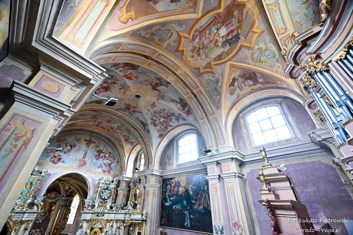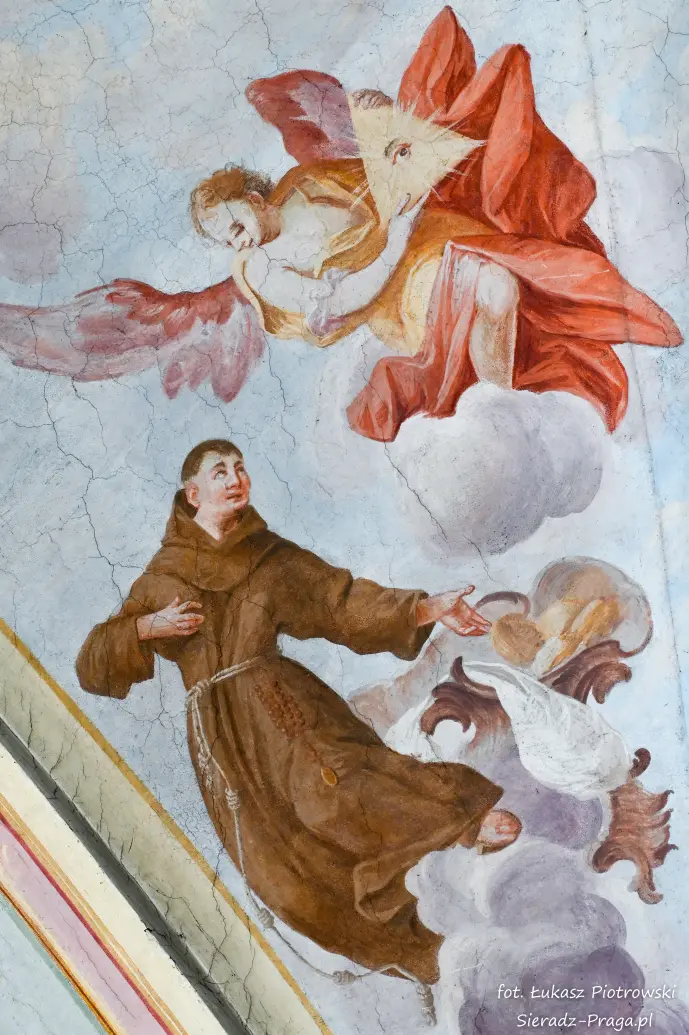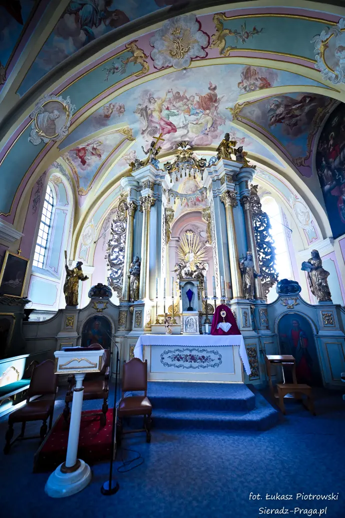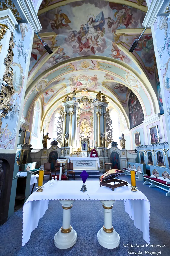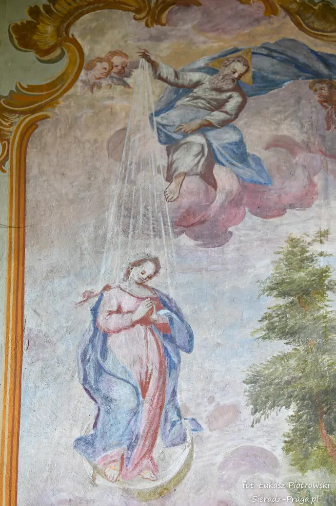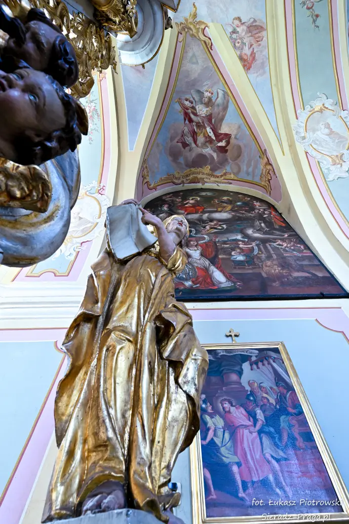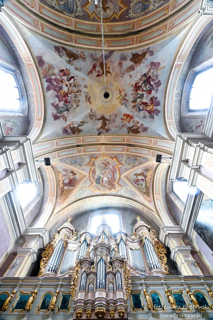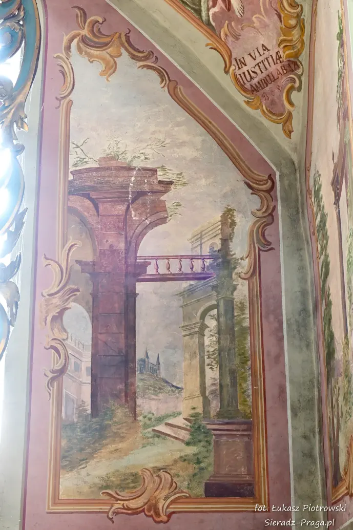 Dzisiaj pragnę przenieść się do niezwykłego miejsca, które jest oddalone od Sieradza jedynie o kilkanaście kilometrów. Tym miejscem jest wszystkim dobrze znany klasztor Ojców Bernardynów w Warcie, który jest również parafią pw. Najświętszej Maryi Panny. W ostatnich latach to miejsce stało mi się bliższe, a to za sprawą sąsiadujących z nim Sióstr Bernardynek, które 16 czerwca 2023 roku „ za sprawą” klasztoru Ojców Bernardynów mogłem pierwszy raz poznać. Od tamtego czasu stałem się częstszym bywalcem tych bliskich mojemu sercu miejsc. W klasztorze u Ojców Bernardynów bywałem też już wcześniej, a pierwsze zdjęcia z wnętrza kościoła wykonałem 8 listopada 2019 roku. Natomiast 18 września i 14 listopada 2024 roku nagrałem dronem z zewnątrz i wewnątrz kościoła filmy. To wszystko, o czym wspominam, możecie, Drodzy Czytelnicy, obejrzeć, klikając tutaj. Jednak oprócz zdjęć i filmów ukazujących piękno tego miejsca brakowało jeszcze czegoś. Tym brakującym elementem warckiego klasztoru są piękne malowidła ścienne kościoła. I to im pragnę poświęcić obecną zakładkę.
