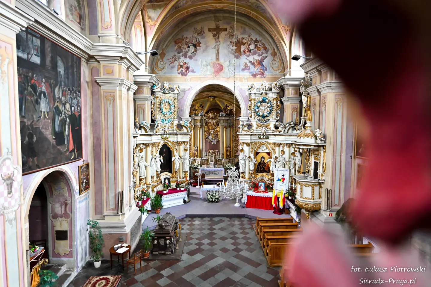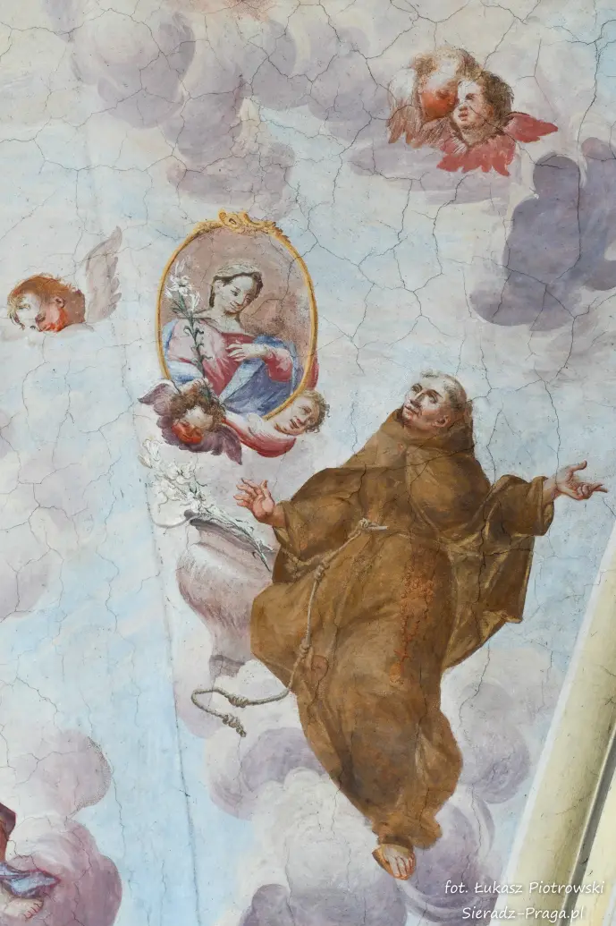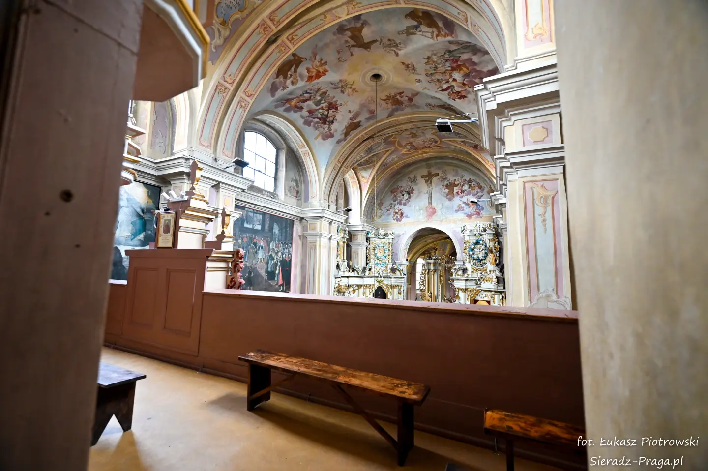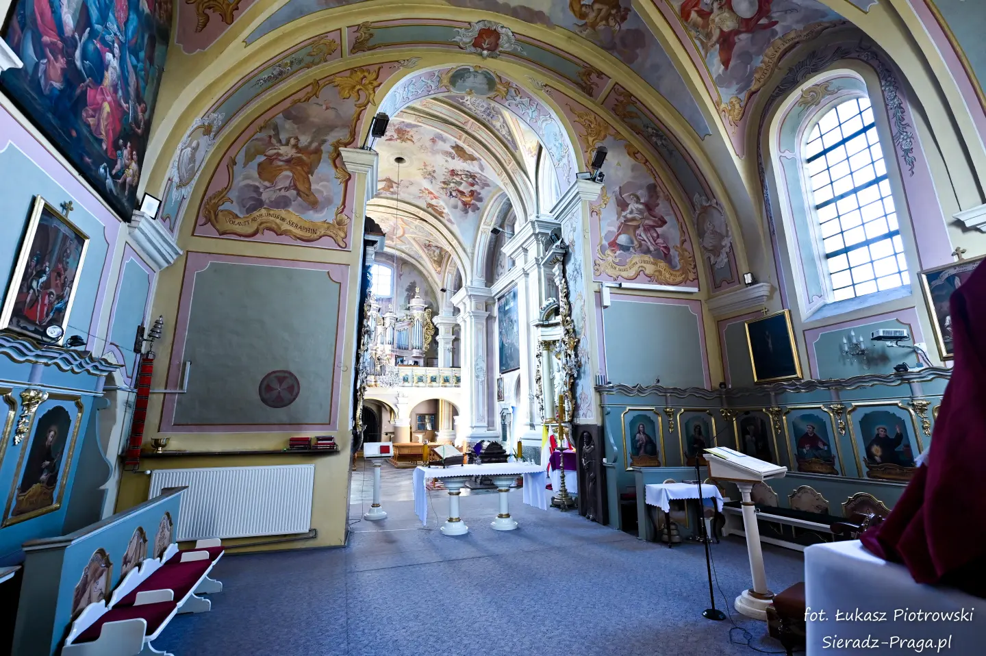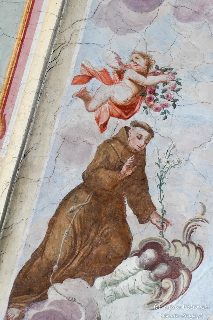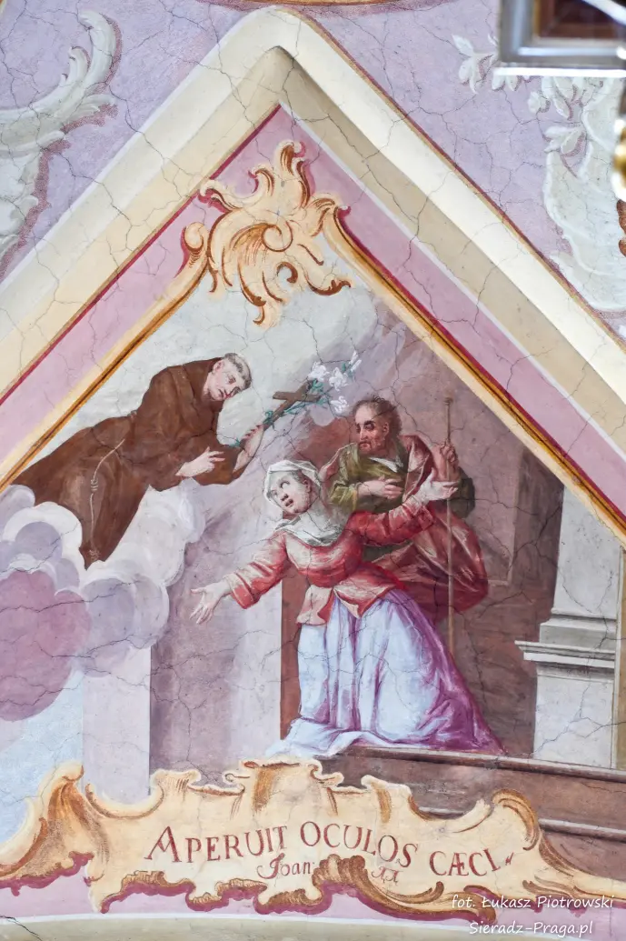 Dzisiaj pragnę przenieść się do niezwykłego miejsca, które jest oddalone od Sieradza jedynie o kilkanaście kilometrów. Tym miejscem jest wszystkim dobrze znany klasztor Ojców Bernardynów w Warcie, który jest również parafią pw. Najświętszej Maryi Panny. W ostatnich latach to miejsce stało mi się bliższe, a to za sprawą sąsiadujących z nim Sióstr Bernardynek, które 16 czerwca 2023 roku „ za sprawą” klasztoru Ojców Bernardynów mogłem pierwszy raz poznać. Od tamtego czasu stałem się częstszym bywalcem tych bliskich mojemu sercu miejsc. W klasztorze u Ojców Bernardynów bywałem też już wcześniej, a pierwsze zdjęcia z wnętrza kościoła wykonałem 8 listopada 2019 roku. Natomiast 18 września i 14 listopada 2024 roku nagrałem dronem z zewnątrz i wewnątrz kościoła filmy. To wszystko, o czym wspominam, możecie, Drodzy Czytelnicy, obejrzeć, klikając tutaj. Jednak oprócz zdjęć i filmów ukazujących piękno tego miejsca brakowało jeszcze czegoś. Tym brakującym elementem warckiego klasztoru są piękne malowidła ścienne kościoła. I to im pragnę poświęcić obecną zakładkę.