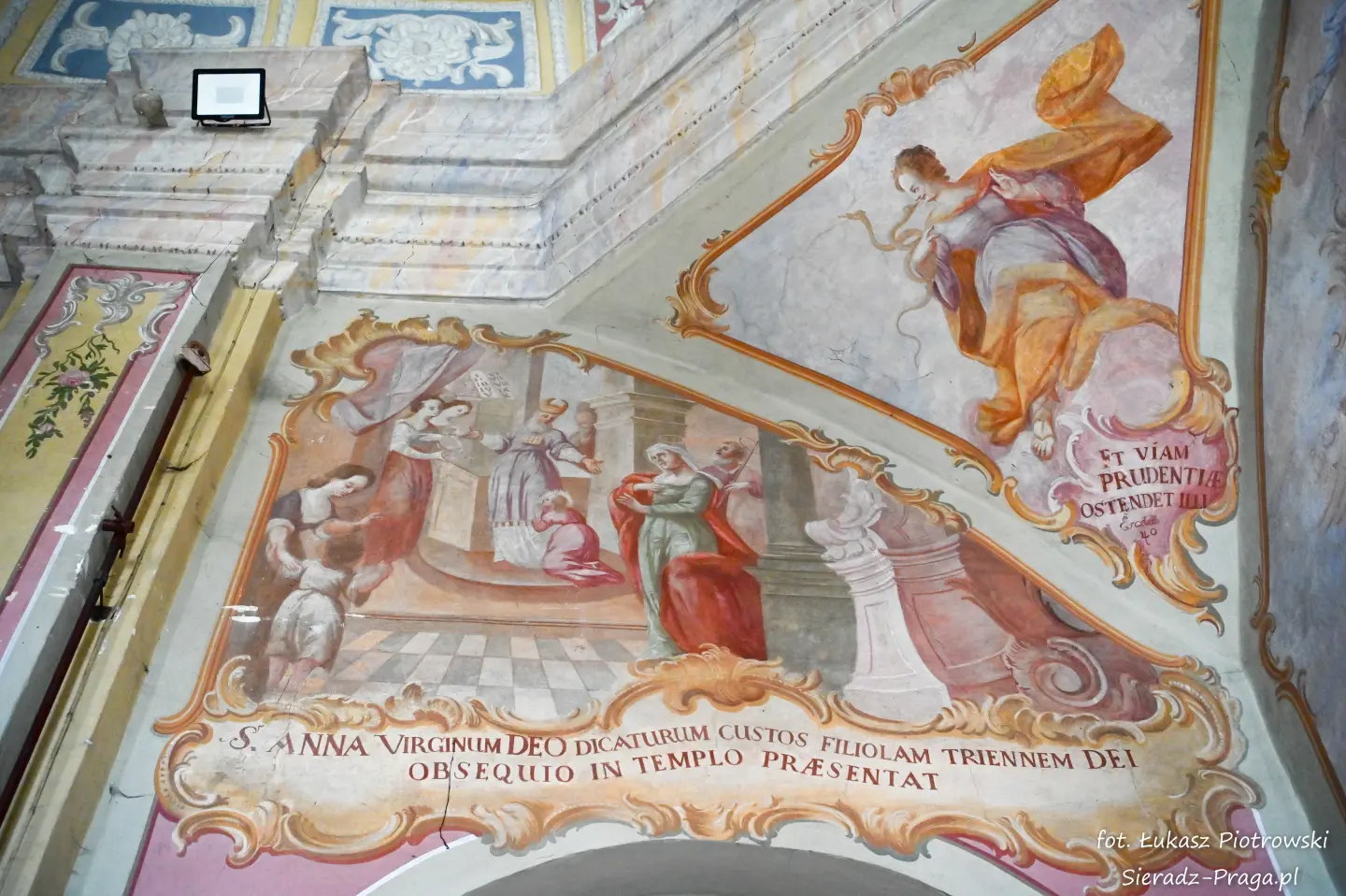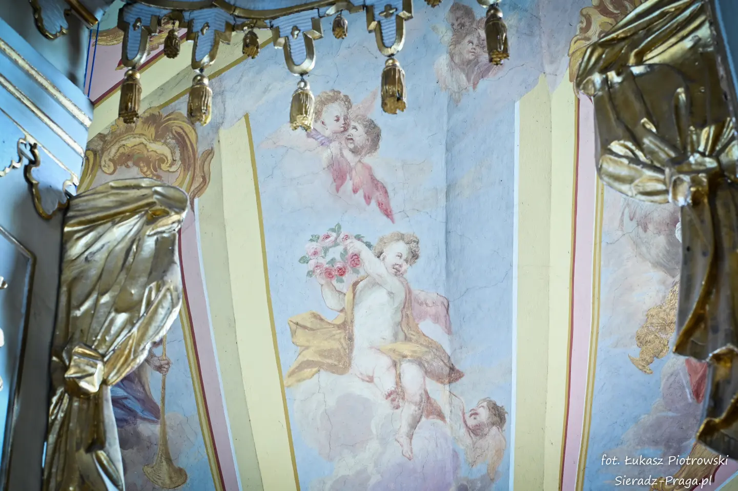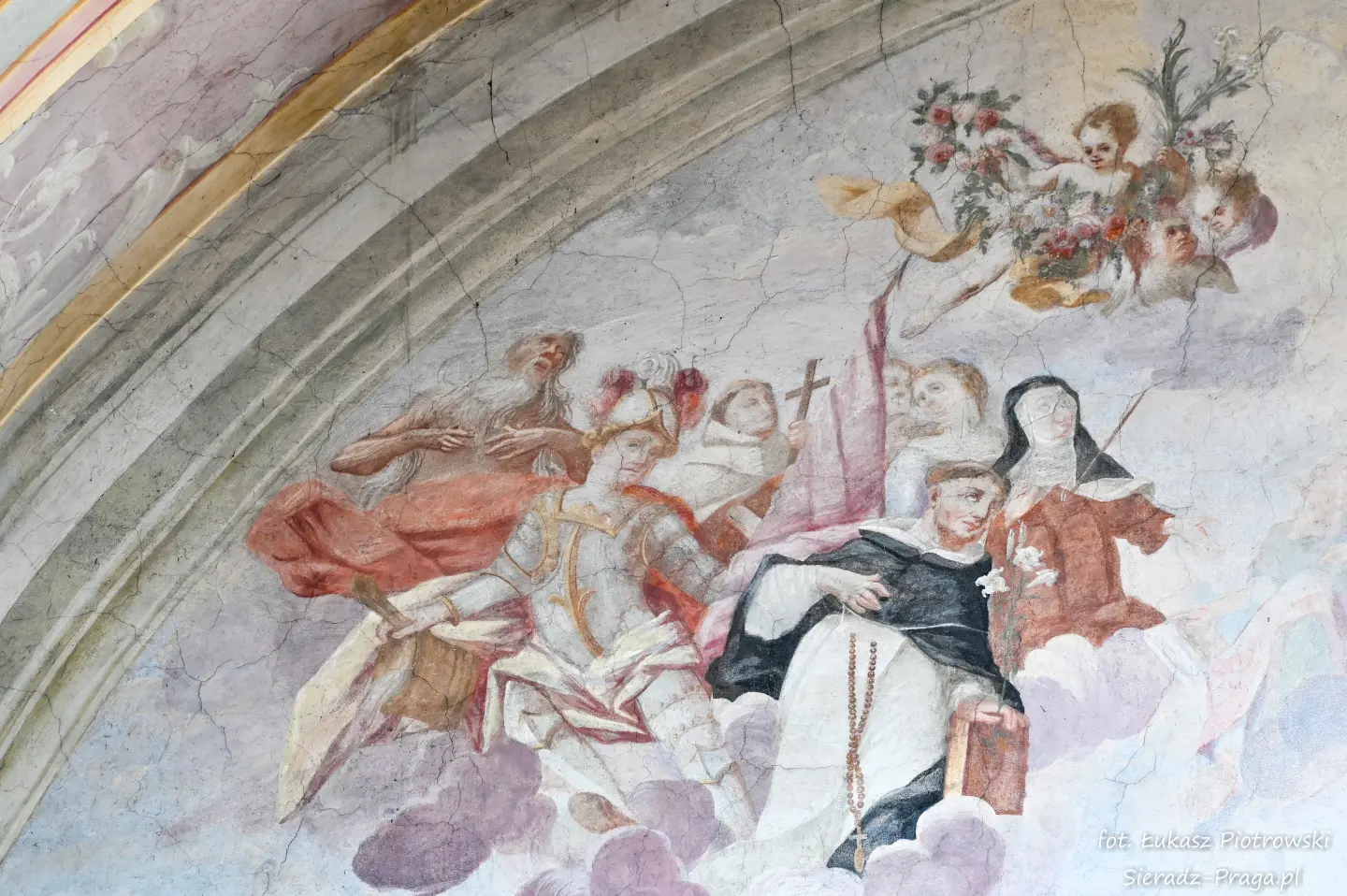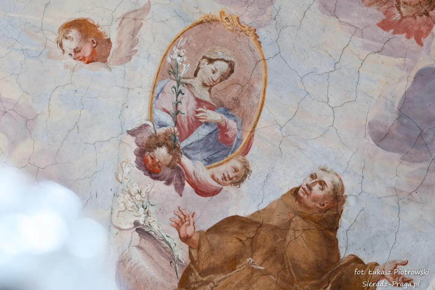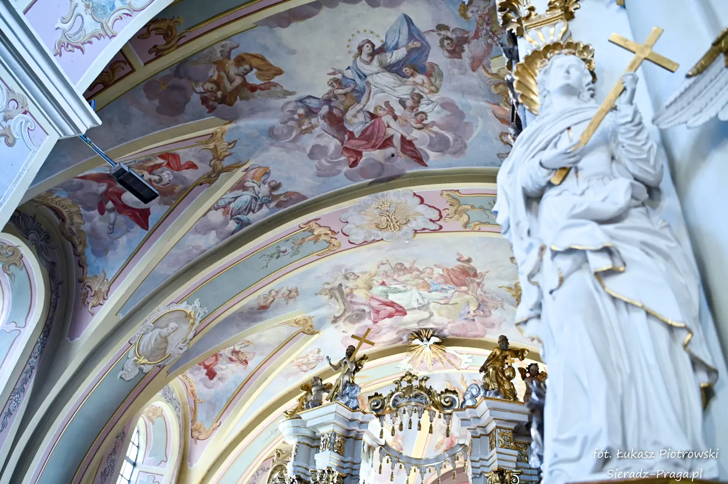 Dzisiaj pragnę przenieść się do niezwykłego miejsca, które jest oddalone od Sieradza jedynie o kilkanaście kilometrów. Tym miejscem jest wszystkim dobrze znany klasztor Ojców Bernardynów w Warcie, który jest również parafią pw. Najświętszej Maryi Panny. W ostatnich latach to miejsce stało mi się bliższe, a to za sprawą sąsiadujących z nim Sióstr Bernardynek, które 16 czerwca 2023 roku „ za sprawą” klasztoru Ojców Bernardynów mogłem pierwszy raz poznać. Od tamtego czasu stałem się częstszym bywalcem tych bliskich mojemu sercu miejsc. W klasztorze u Ojców Bernardynów bywałem też już wcześniej, a pierwsze zdjęcia z wnętrza kościoła wykonałem 8 listopada 2019 roku. Natomiast 18 września i 14 listopada 2024 roku nagrałem dronem z zewnątrz i wewnątrz kościoła filmy. To wszystko, o czym wspominam, możecie, Drodzy Czytelnicy, obejrzeć, klikając tutaj. Jednak oprócz zdjęć i filmów ukazujących piękno tego miejsca brakowało jeszcze czegoś. Tym brakującym elementem warckiego klasztoru są piękne malowidła ścienne kościoła. I to im pragnę poświęcić obecną zakładkę.
