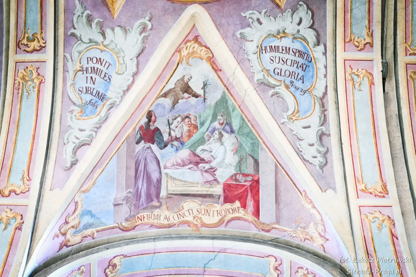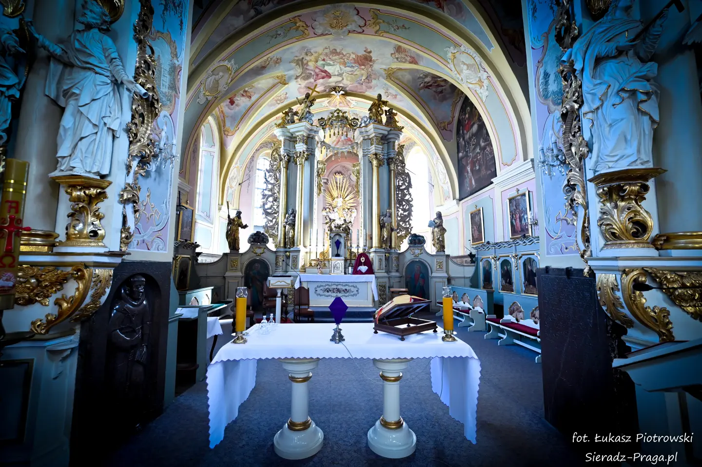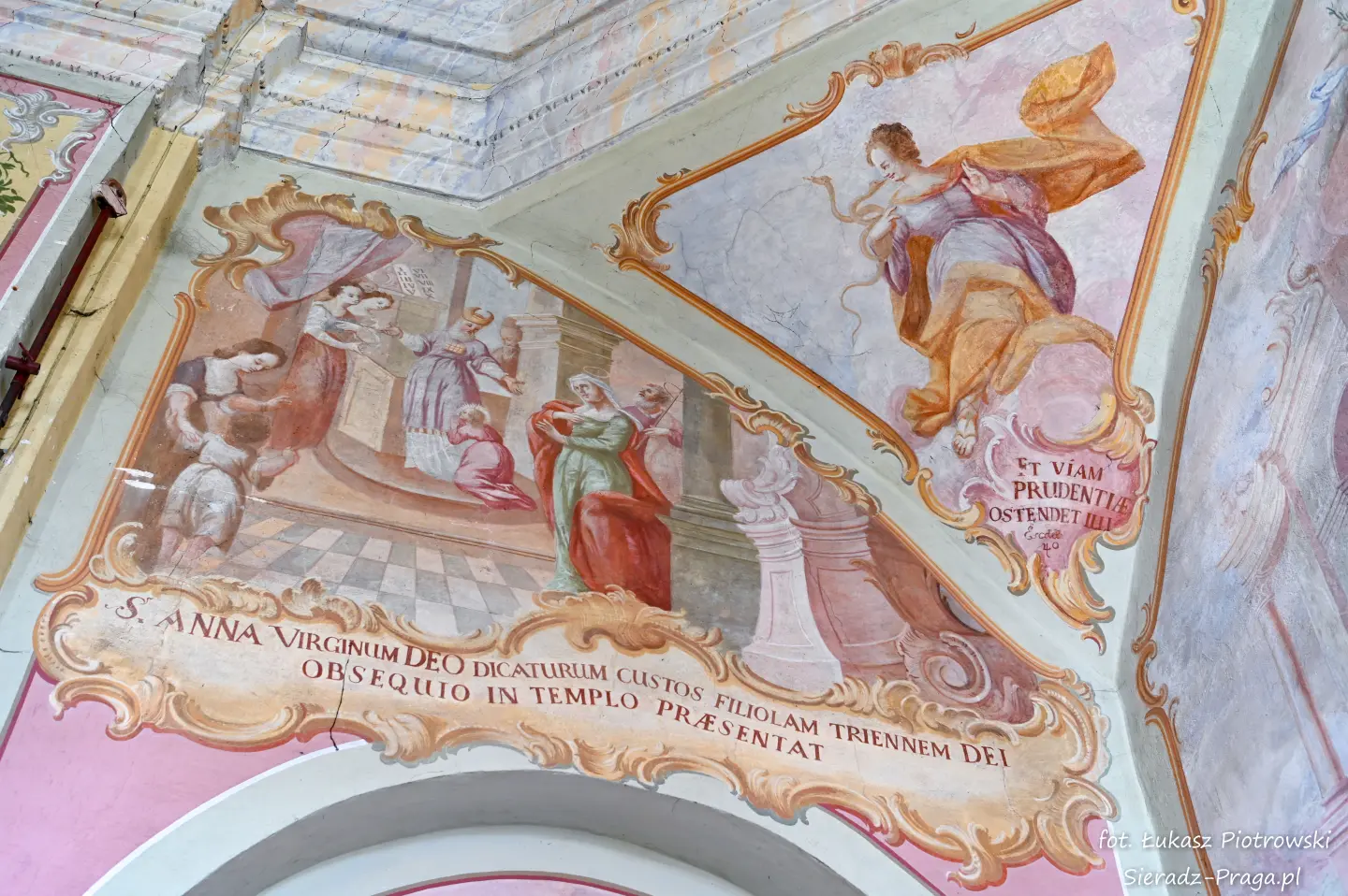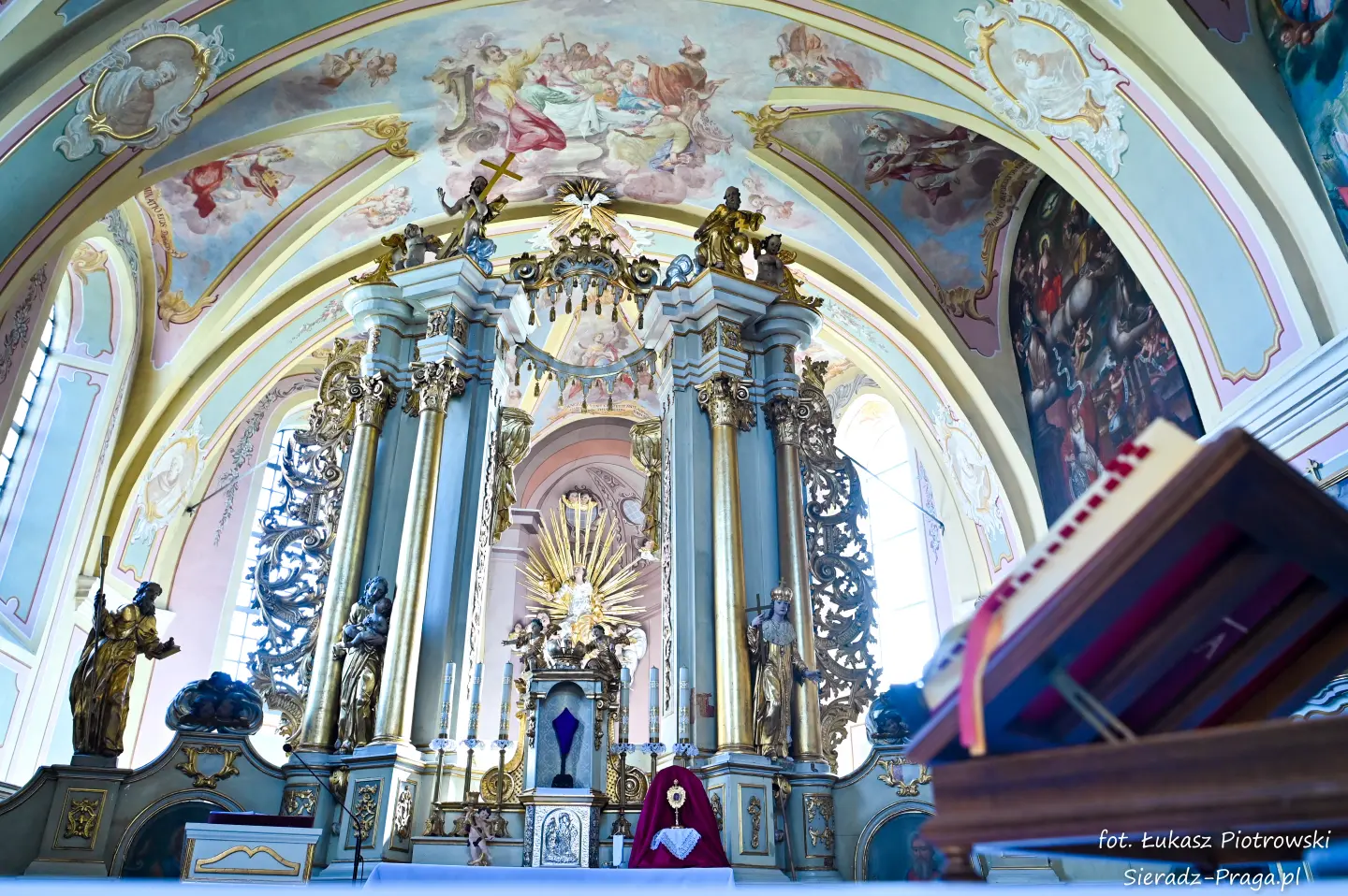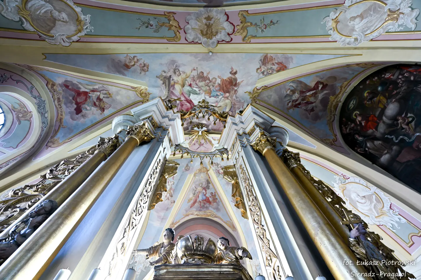 Dzisiaj pragnę przenieść się do niezwykłego miejsca, które jest oddalone od Sieradza jedynie o kilkanaście kilometrów. Tym miejscem jest wszystkim dobrze znany klasztor Ojców Bernardynów w Warcie, który jest również parafią pw. Najświętszej Maryi Panny. W ostatnich latach to miejsce stało mi się bliższe, a to za sprawą sąsiadujących z nim Sióstr Bernardynek, które 16 czerwca 2023 roku „ za sprawą” klasztoru Ojców Bernardynów mogłem pierwszy raz poznać. Od tamtego czasu stałem się częstszym bywalcem tych bliskich mojemu sercu miejsc. W klasztorze u Ojców Bernardynów bywałem też już wcześniej, a pierwsze zdjęcia z wnętrza kościoła wykonałem 8 listopada 2019 roku. Natomiast 18 września i 14 listopada 2024 roku nagrałem dronem z zewnątrz i wewnątrz kościoła filmy. To wszystko, o czym wspominam, możecie, Drodzy Czytelnicy, obejrzeć, klikając tutaj. Jednak oprócz zdjęć i filmów ukazujących piękno tego miejsca brakowało jeszcze czegoś. Tym brakującym elementem warckiego klasztoru są piękne malowidła ścienne kościoła. I to im pragnę poświęcić obecną zakładkę.