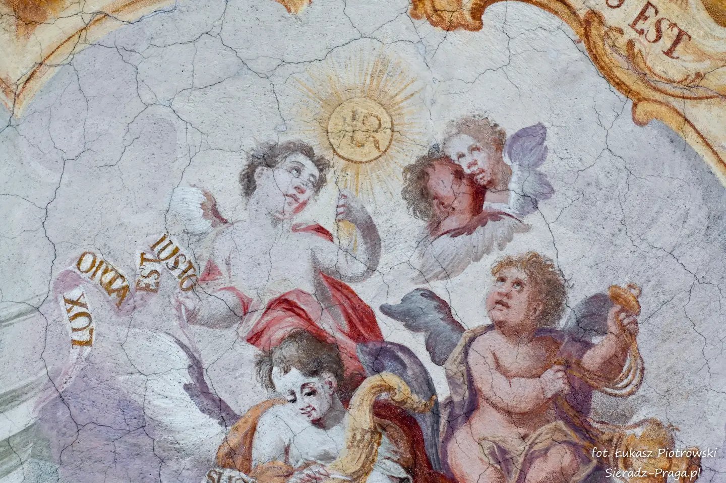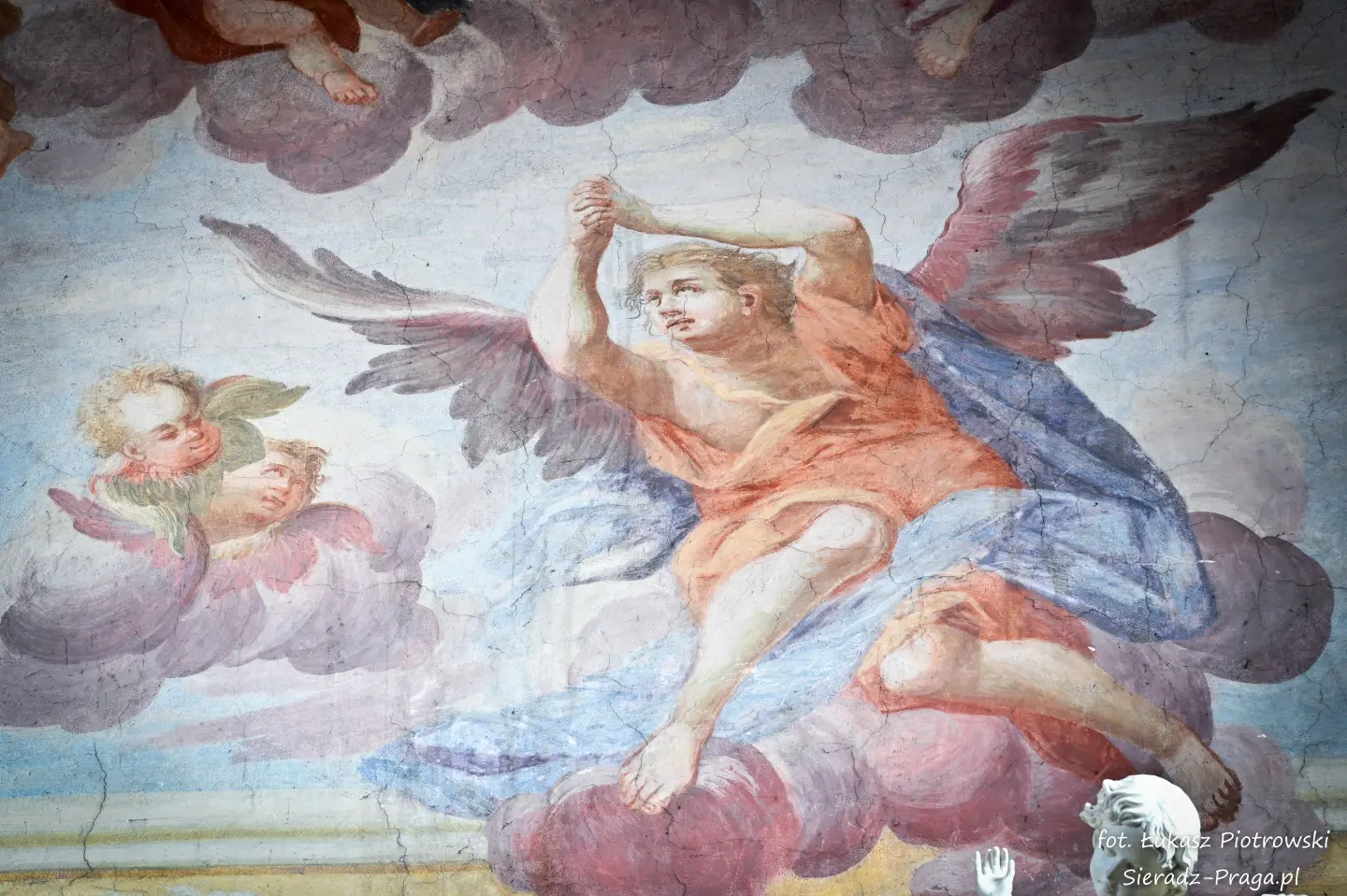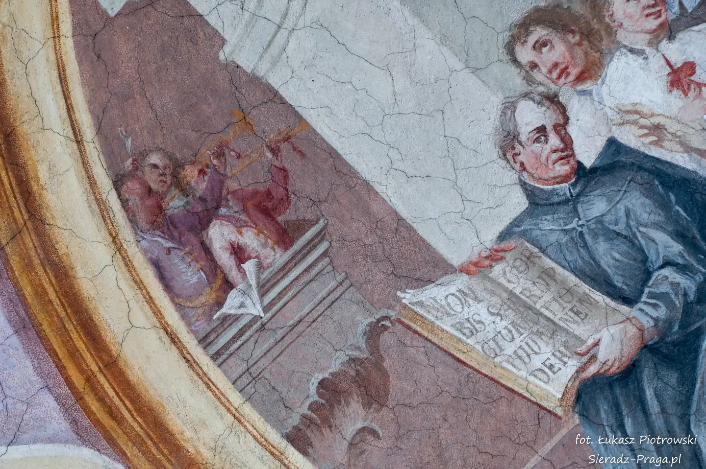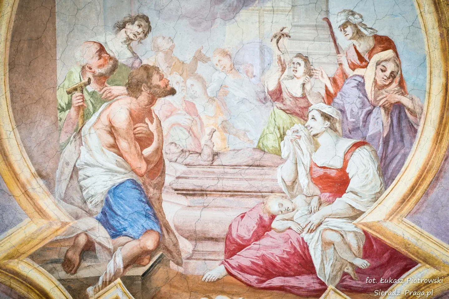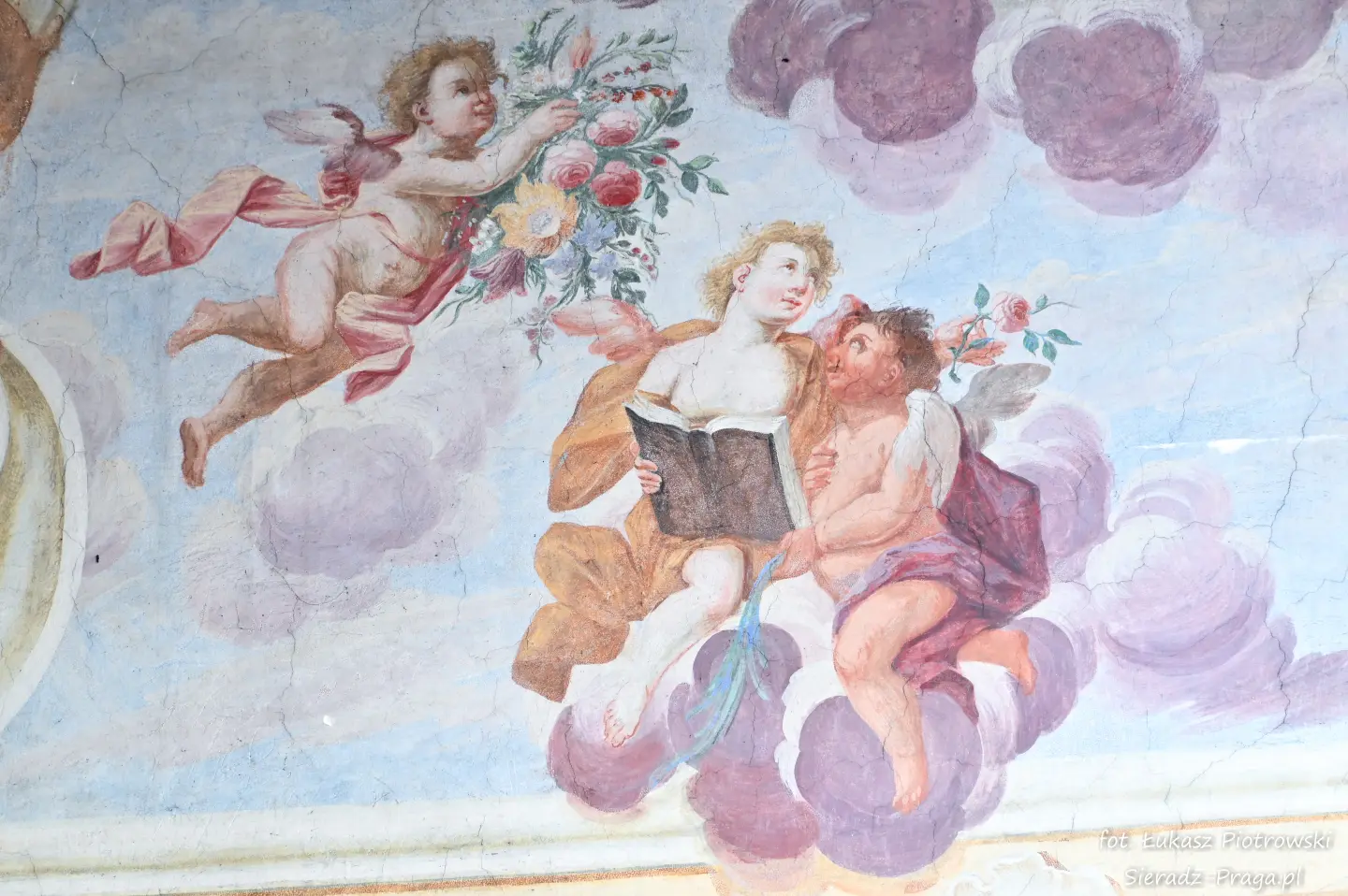 Malarze ukazują na polichromiach sklepień warckiego klasztoru sceny m.in. Wniebowzięcia NMP i dziewięć chórów anielskich, adorację Chrystusa Ukrzyżowanego przez świętych i aniołów, wizję Nieba z polskimi świętymi i błogosławionymi. Jest również ukazane na sklepieniach życie i cuda Sługi Bożego Rafała z Proszowic, którego kult trwa nieprzerwanie od XVI wieku, a w kaplicy św. Anny możemy podziwiać sceny z życia matki Maryi, a zarazem babci Jezusa i personifikacje czterech cnót kardynalnych. W tym miejscu kieruję podziękowania dla mojego serdecznego kolegi dr. hab Pawła Migasiewicza, sieradzanina, a zarazem profesora pracującego w Polskiej Akademii Nauk w Warszawie za zawsze okazywaną mi pomoc.