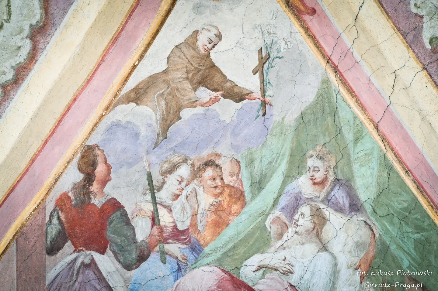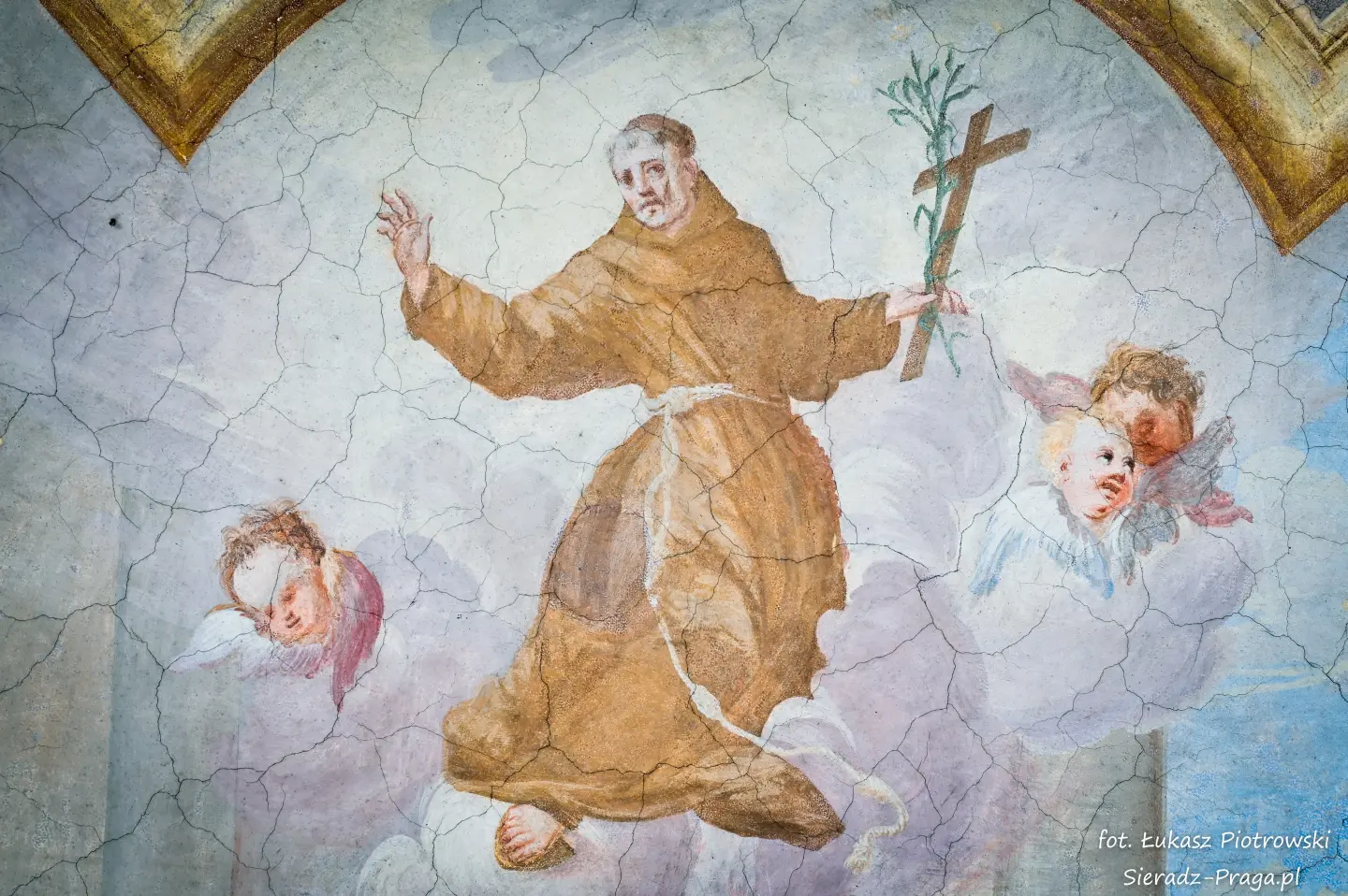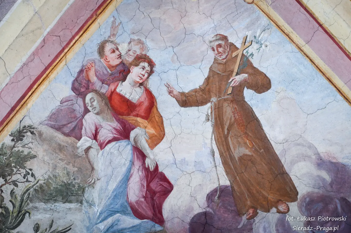 Drodzy Czytelnicy, historia tego świętego miejsca, w którym się znajdujemy, rozpoczyna się w 1457 roku, kiedy to mieszczanie warccy, Świętosław i Anna Darmopychowie oraz Dorota Kurska i Dorota Zarębina, ofiarowują ziemię pod budowę kościoła i klasztoru Ojców Bernardynów. Niestety nowo wybudowane budynki drewniane kilkakrotnie ulegają zniszczeniu w trakcie pożarów. W roku 1482 następuje budowa nowego, murowanego zespołu klasztornego, któremu nadano gotycką formę. Tak rozpoczyna się historia warckiego klasztoru Ojców Bernardynów, która liczy już 568 lat. Po więcej informacji zapraszam na oficjalną stronę klasztoru, która znajduje się pod adresem: www.warta.bernardyni.pl. Ja natomiast pragnę przenieść się do roku 1756, w którym to artyści bernardyńscy: br. Walenty Żebrowski, br. Cyprian Kayzer, br. Błażej Kopański wykonują przepiękną polichromię warckiego kościoła Ojców Bernardynów, która na przestrzeni lat zostaje poddawana gruntownej konserwacji. Ostatnia taka konserwacja ma miejsce w latach 1963-1967, i jest wykonana przez artystę konserwatora mgr. Danutę Majdę i jej zespół.