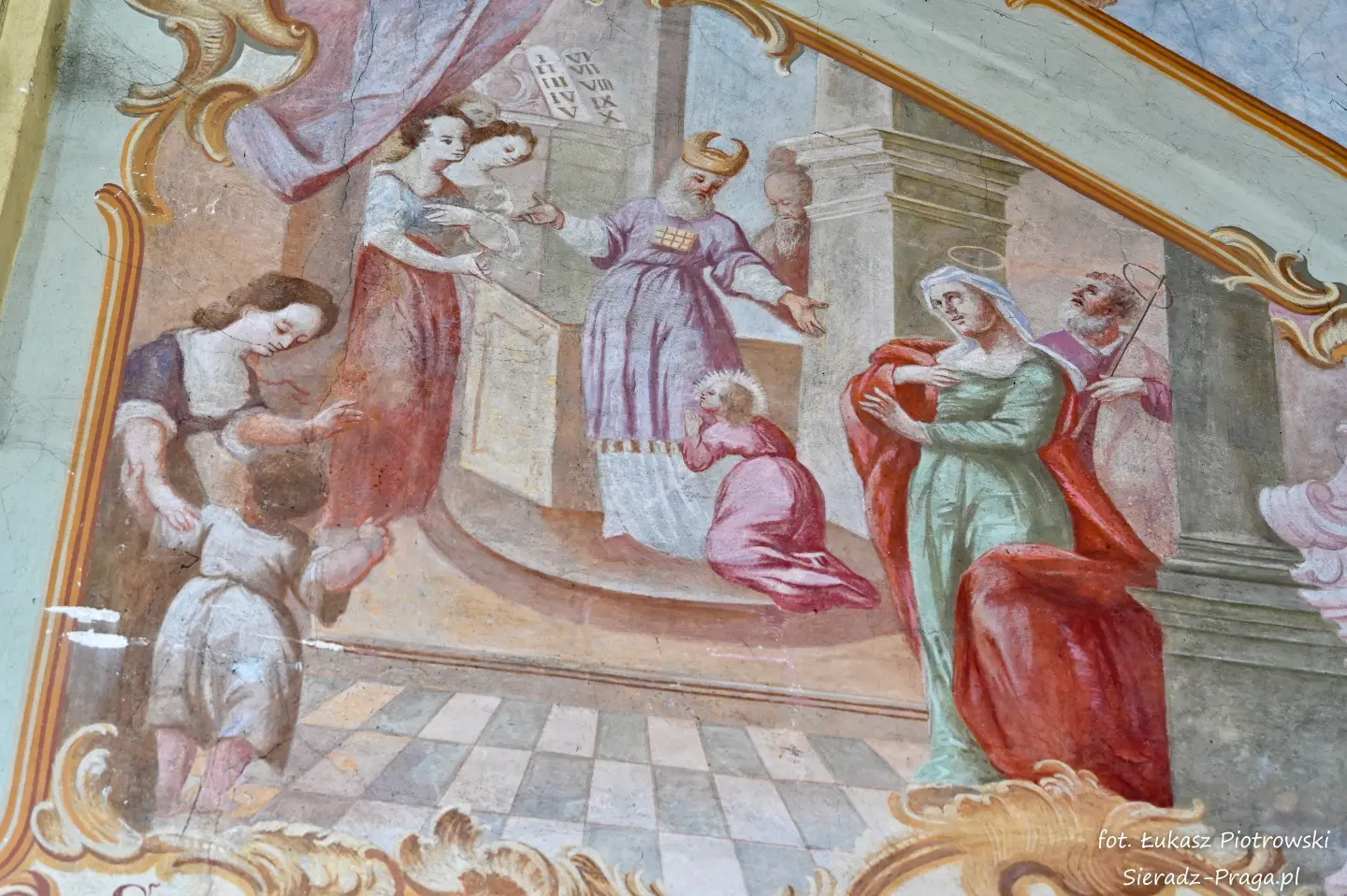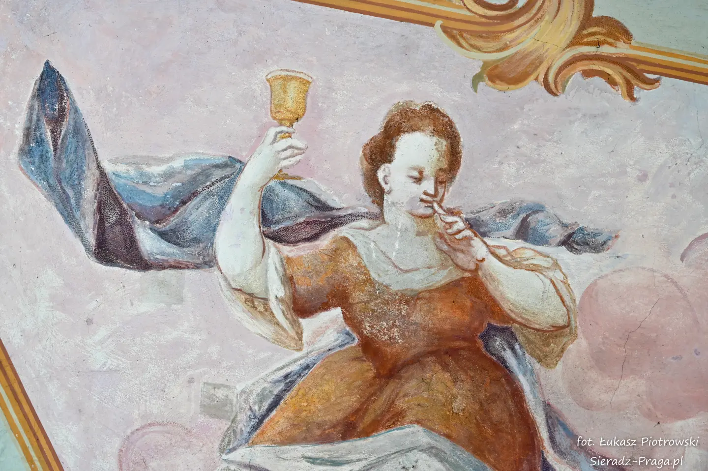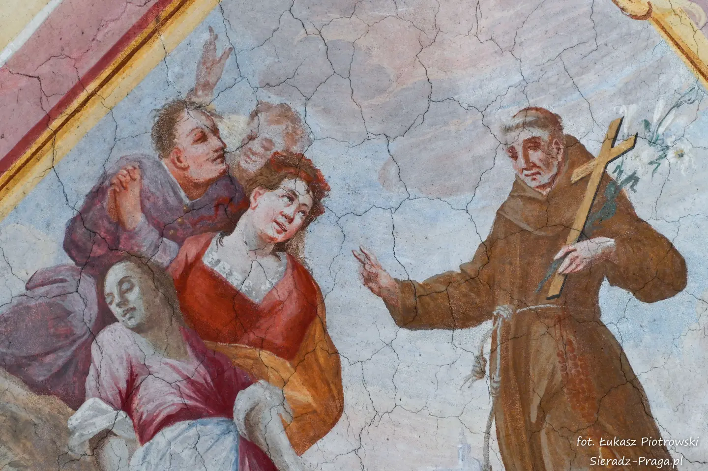 Drodzy Czytelnicy, historia tego świętego miejsca, w którym się znajdujemy, rozpoczyna się w 1457 roku, kiedy to mieszczanie warccy, Świętosław i Anna Darmopychowie oraz Dorota Kurska i Dorota Zarębina, ofiarowują ziemię pod budowę kościoła i klasztoru Ojców Bernardynów. Niestety nowo wybudowane budynki drewniane kilkakrotnie ulegają zniszczeniu w trakcie pożarów. W roku 1482 następuje budowa nowego, murowanego zespołu klasztornego, któremu nadano gotycką formę. Tak rozpoczyna się historia warckiego klasztoru Ojców Bernardynów, która liczy już 568 lat. Po więcej informacji zapraszam na oficjalną stronę klasztoru, która znajduje się pod adresem: www.warta.bernardyni.pl. Ja natomiast pragnę przenieść się do roku 1756, w którym to artyści bernardyńscy: br. Walenty Żebrowski, br. Cyprian Kayzer, br. Błażej Kopański wykonują przepiękną polichromię warckiego kościoła Ojców Bernardynów, która na przestrzeni lat zostaje poddawana gruntownej konserwacji. Ostatnia taka konserwacja ma miejsce w latach 1963-1967, i jest wykonana przez artystę konserwatora mgr. Danutę Majdę i jej zespół.