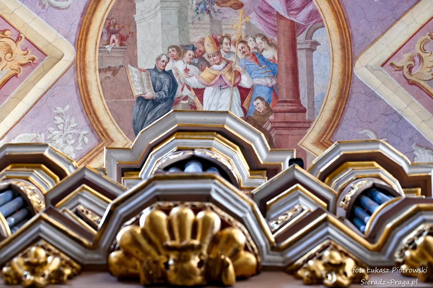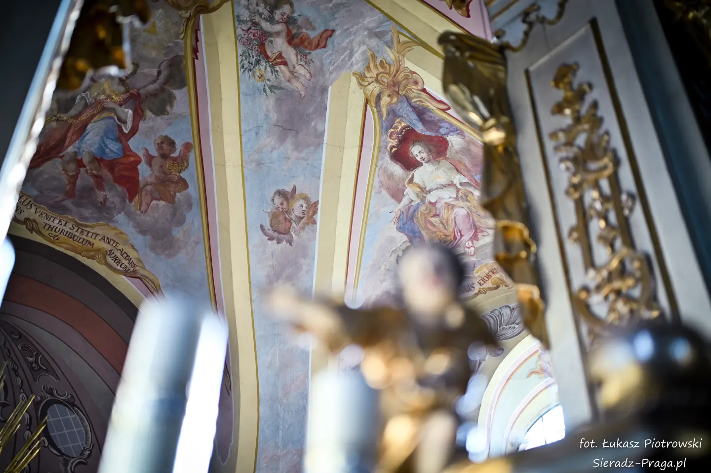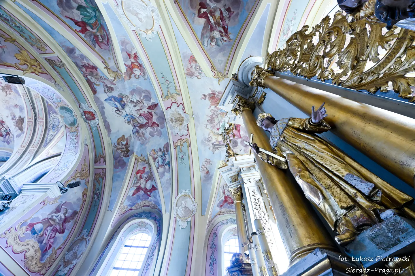 Fotografowanie tych wszystkich sklepień kościoła było dla mnie czymś niezwykłym. W głębi serca odczuwałem radość, że nie tylko na swoich fotografiach będę mógł ukazać bogatą polichromię warckiego kościoła Ojców Bernardynów, ale przede wszystkim, że ukażę Dom Boży, w którym mieszka sam Bóg. Zawsze, ilekroć jestem w takich wiekowych kościołach, jestem pod wrażeniem nie tylko tego, z jakim rozmachem dawniej budowano kościoły, ale też jak dbano o wygląd i wystrój obiektów sakralnych. Wiele zabytkowych kościołów, a do takich należy klasztor Ojców Bernardynów w Warcie, to nie tylko miejsca do modlitwy, ale również świadkowie historycznych przemian, pełni duchowego dziedzictwa i artystycznych osiągnięć minionych wieków. To pokazuje, z jakim szacunkiem dawniej ludzie oddawali cześć Bogu, chociażby poprzez bogactwo zdobień tychże świątyń, które są niejednokrotnie pełne symboliki i historii, która się za nimi kryje. Kościół jest największym mecenasem sztuki, gdzie najwybitniejsi malarze i architekci ukazywali i wciąż ukazują historię pięknego i jakże często prześladowanego Kościoła, którą możemy podziwiać, podróżując po świecie. Taki też jest m.in. klasztor Ojców Bernardynów w Warcie, którego polichromię wykonaną przez bernardyńskich malarzy w XVIII wieku pragnę ukazać na xxx fotografiach.