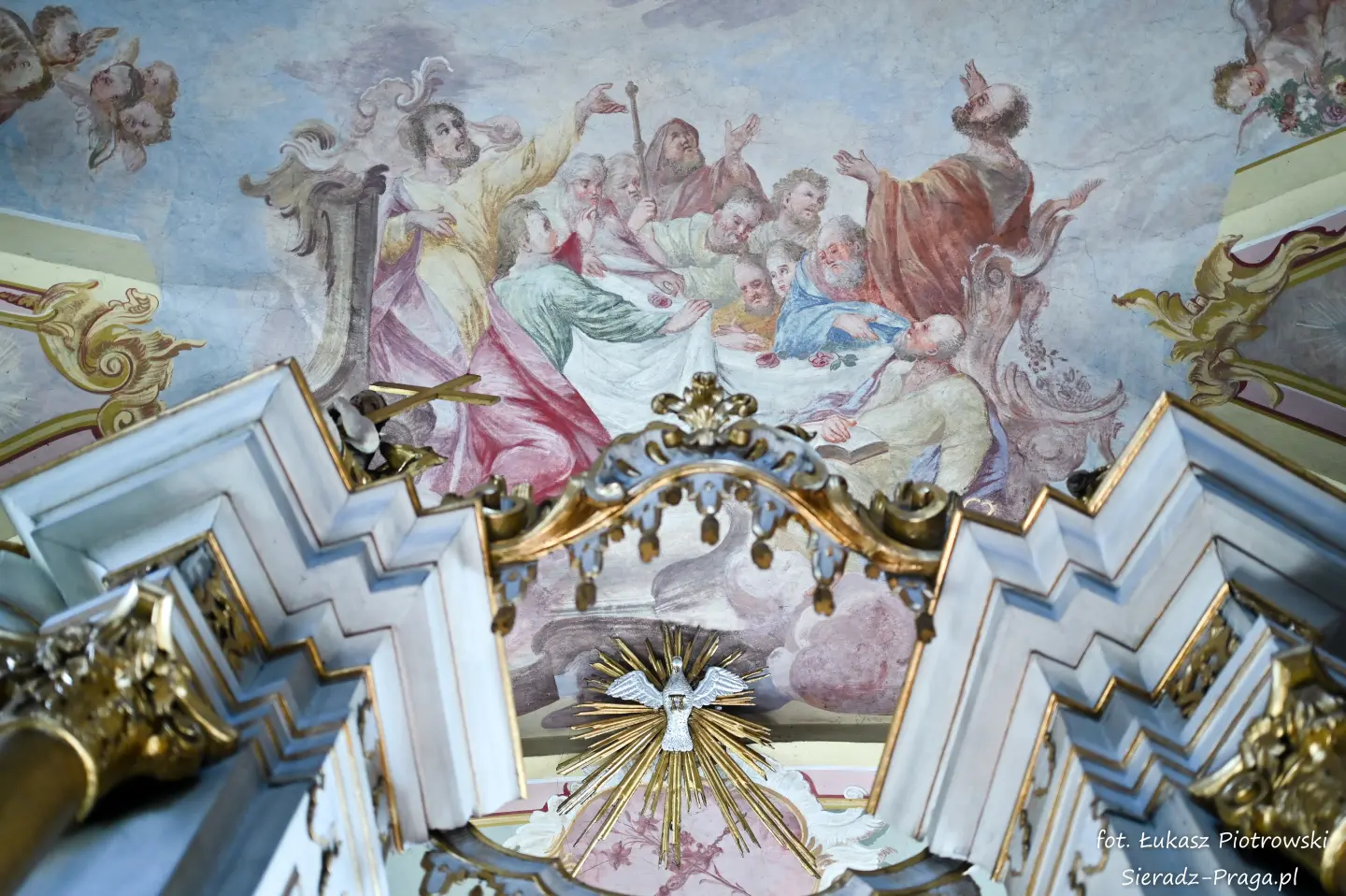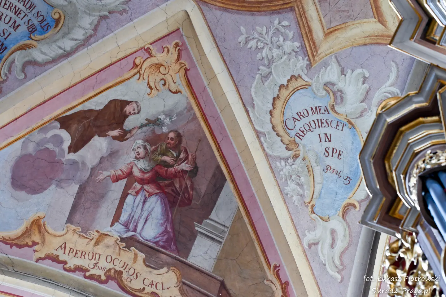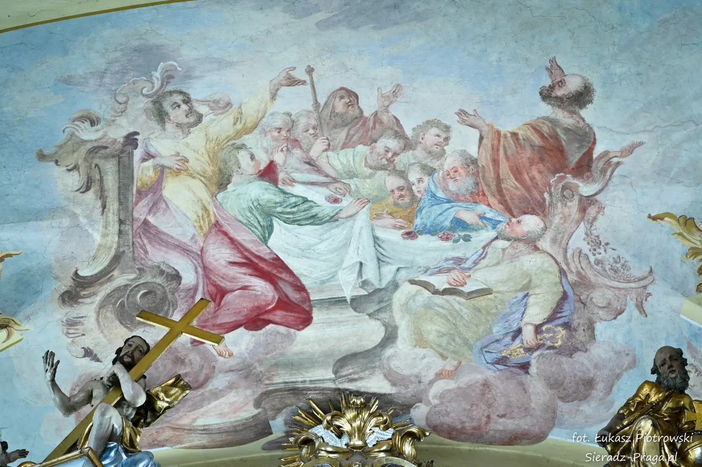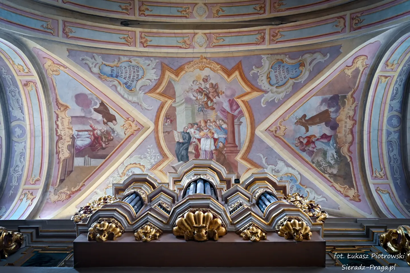 Fotografowanie tych wszystkich sklepień kościoła było dla mnie czymś niezwykłym. W głębi serca odczuwałem radość, że nie tylko na swoich fotografiach będę mógł ukazać bogatą polichromię warckiego kościoła Ojców Bernardynów, ale przede wszystkim, że ukażę Dom Boży, w którym mieszka sam Bóg. Zawsze, ilekroć jestem w takich wiekowych kościołach, jestem pod wrażeniem nie tylko tego, z jakim rozmachem dawniej budowano kościoły, ale też jak dbano o wygląd i wystrój obiektów sakralnych. Wiele zabytkowych kościołów, a do takich należy klasztor Ojców Bernardynów w Warcie, to nie tylko miejsca do modlitwy, ale również świadkowie historycznych przemian, pełni duchowego dziedzictwa i artystycznych osiągnięć minionych wieków. To pokazuje, z jakim szacunkiem dawniej ludzie oddawali cześć Bogu, chociażby poprzez bogactwo zdobień tychże świątyń, które są niejednokrotnie pełne symboliki i historii, która się za nimi kryje. Kościół jest największym mecenasem sztuki, gdzie najwybitniejsi malarze i architekci ukazywali i wciąż ukazują historię pięknego i jakże często prześladowanego Kościoła, którą możemy podziwiać, podróżując po świecie. Taki też jest m.in. klasztor Ojców Bernardynów w Warcie, którego polichromię wykonaną przez bernardyńskich malarzy w XVIII wieku pragnę ukazać na xxx fotografiach.