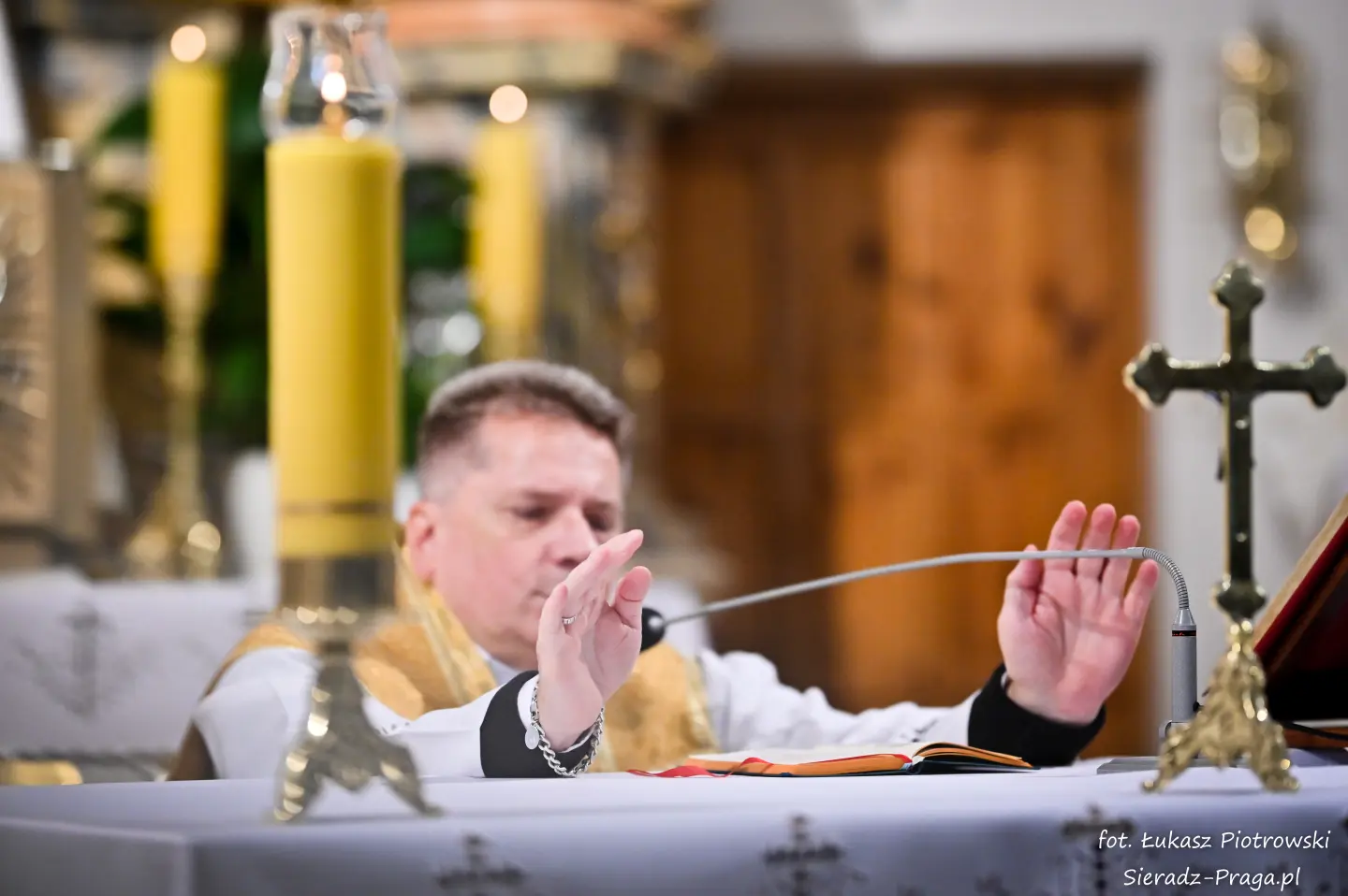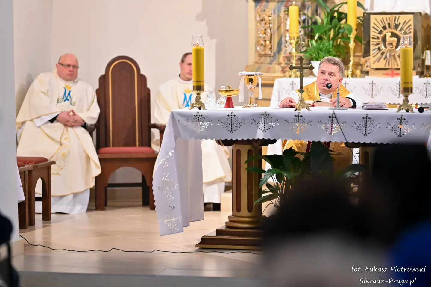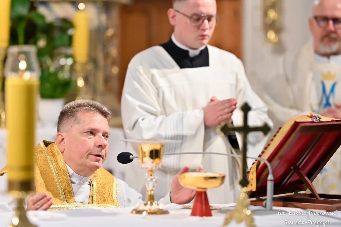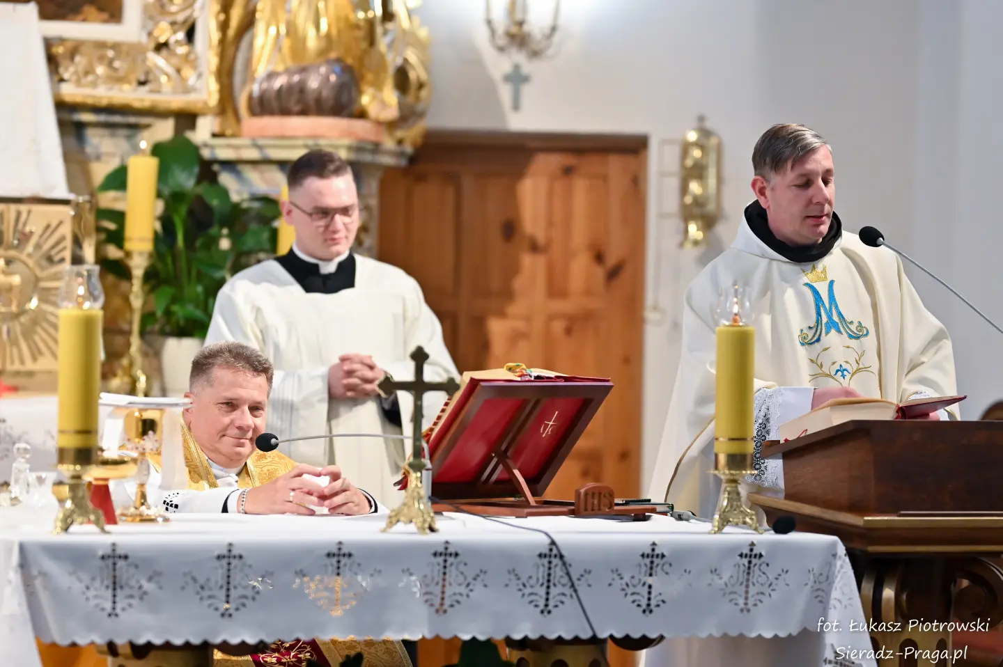 Uroczystości rozpoczęły się adoracją Najświętszego Sakramentu oraz modliliśmy się Koronką do Bożego Miłosierdzia, którą poprowadził kleryk Adam Kałużny. Uroczystej Mszy Świętej przewodniczył i wygłosił kazanie gość honorowy, ks. Marek Bałwas z Ciechocinka. Wraz z nim liturgię koncelebrowali: o. Demetriusz Kmieć z Warty, ks. Marcin Zaworski z Kamionacza, ks. Ryszard Krakowski z Wojkowa i ks. Robert Patrzykąt z Warty.