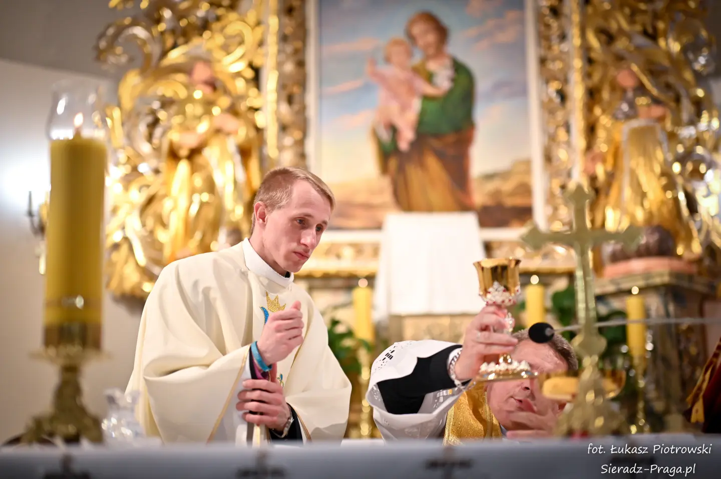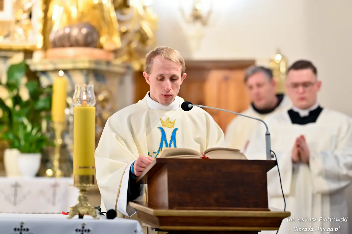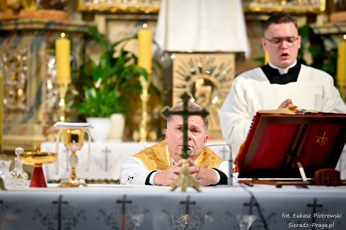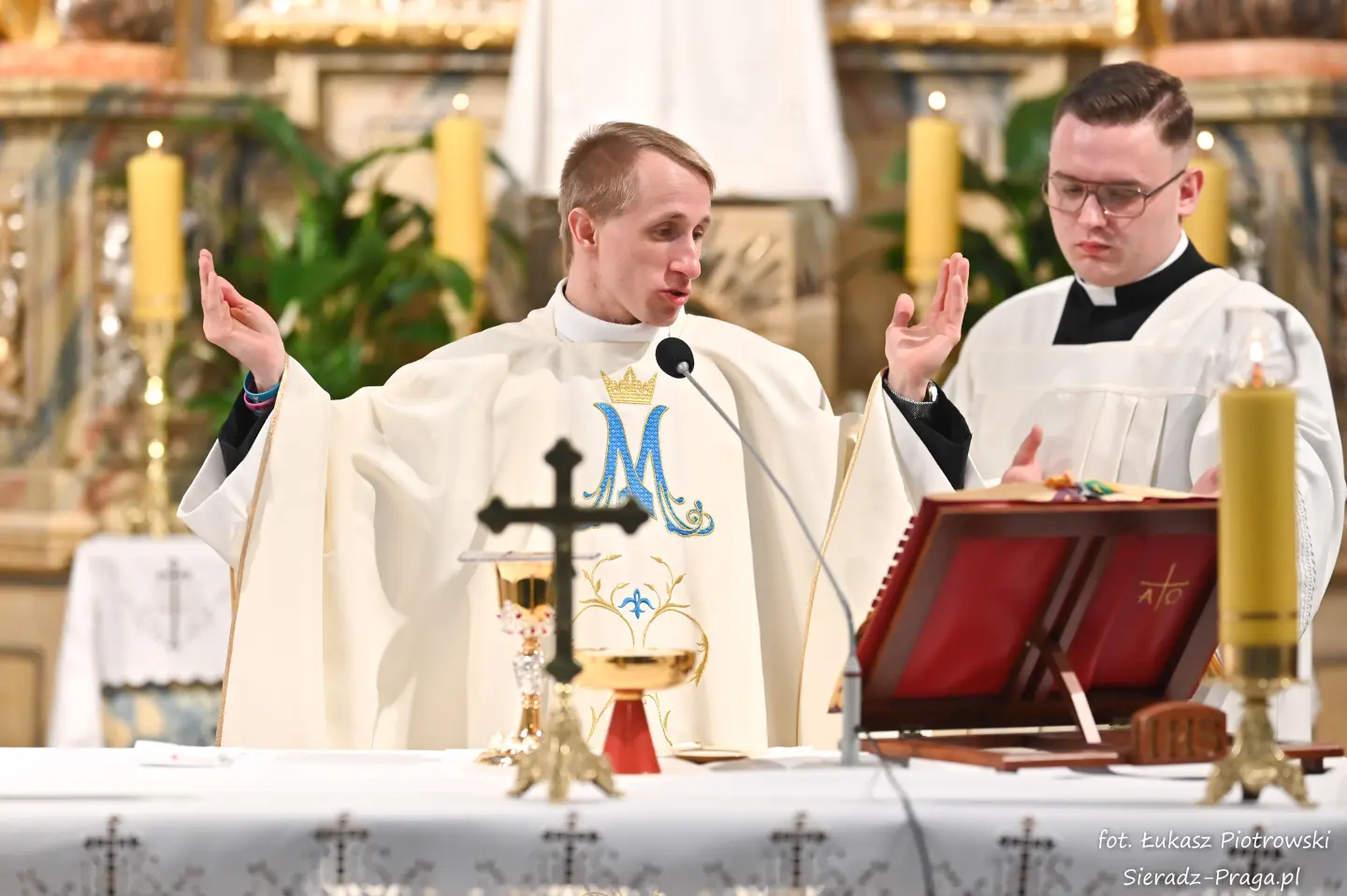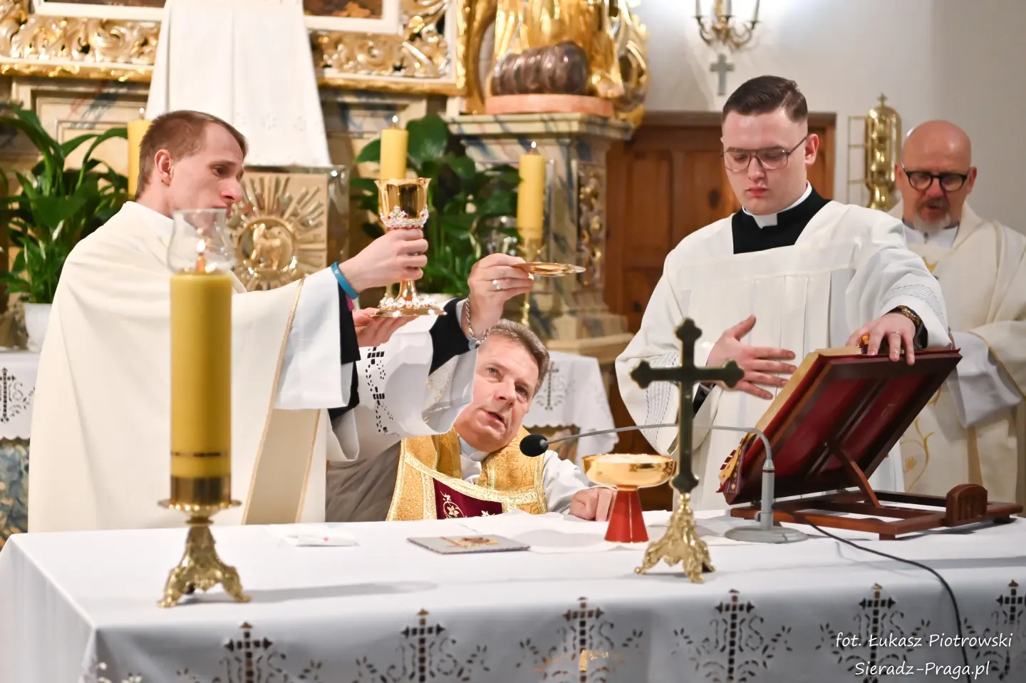 Uroczystości rozpoczęły się adoracją Najświętszego Sakramentu oraz modliliśmy się Koronką do Bożego Miłosierdzia, którą poprowadził kleryk Adam Kałużny. Uroczystej Mszy Świętej przewodniczył i wygłosił kazanie gość honorowy, ks. Marek Bałwas z Ciechocinka. Wraz z nim liturgię koncelebrowali: o. Demetriusz Kmieć z Warty, ks. Marcin Zaworski z Kamionacza, ks. Ryszard Krakowski z Wojkowa i ks. Robert Patrzykąt z Warty.
