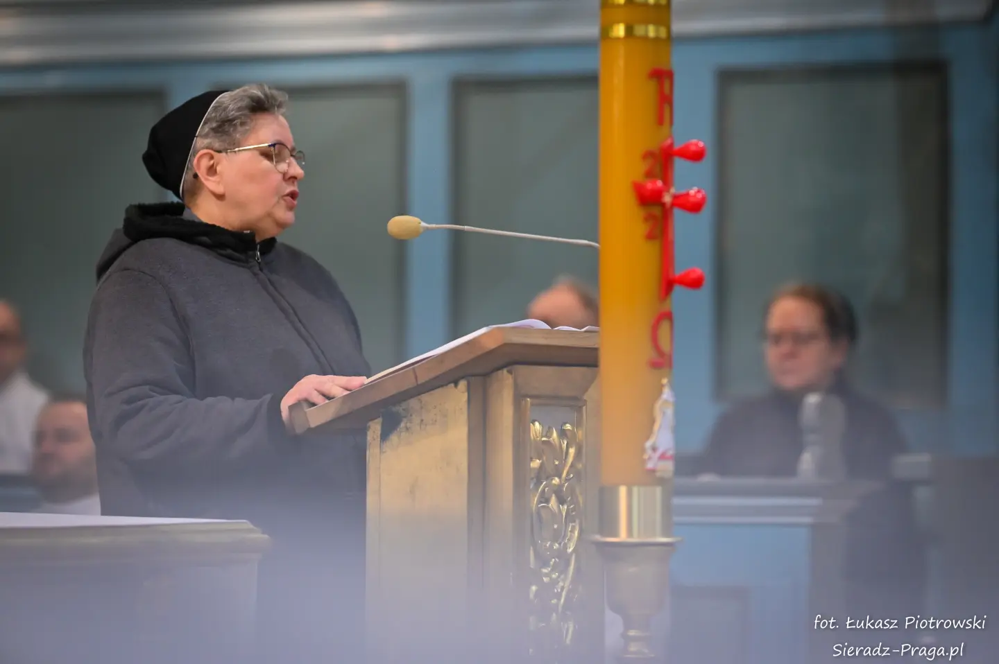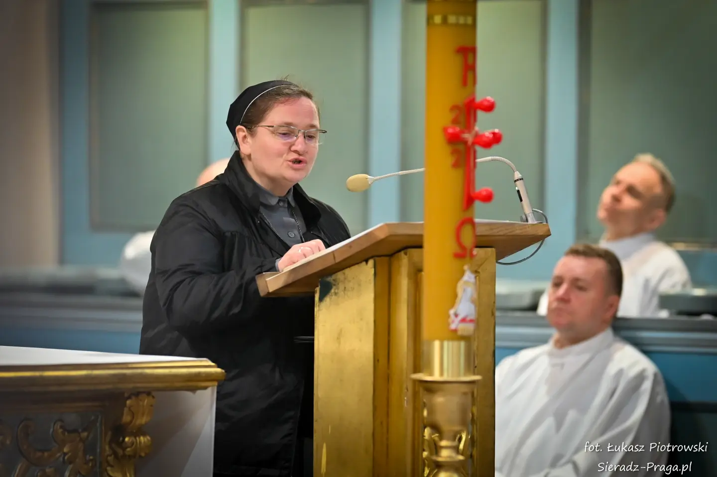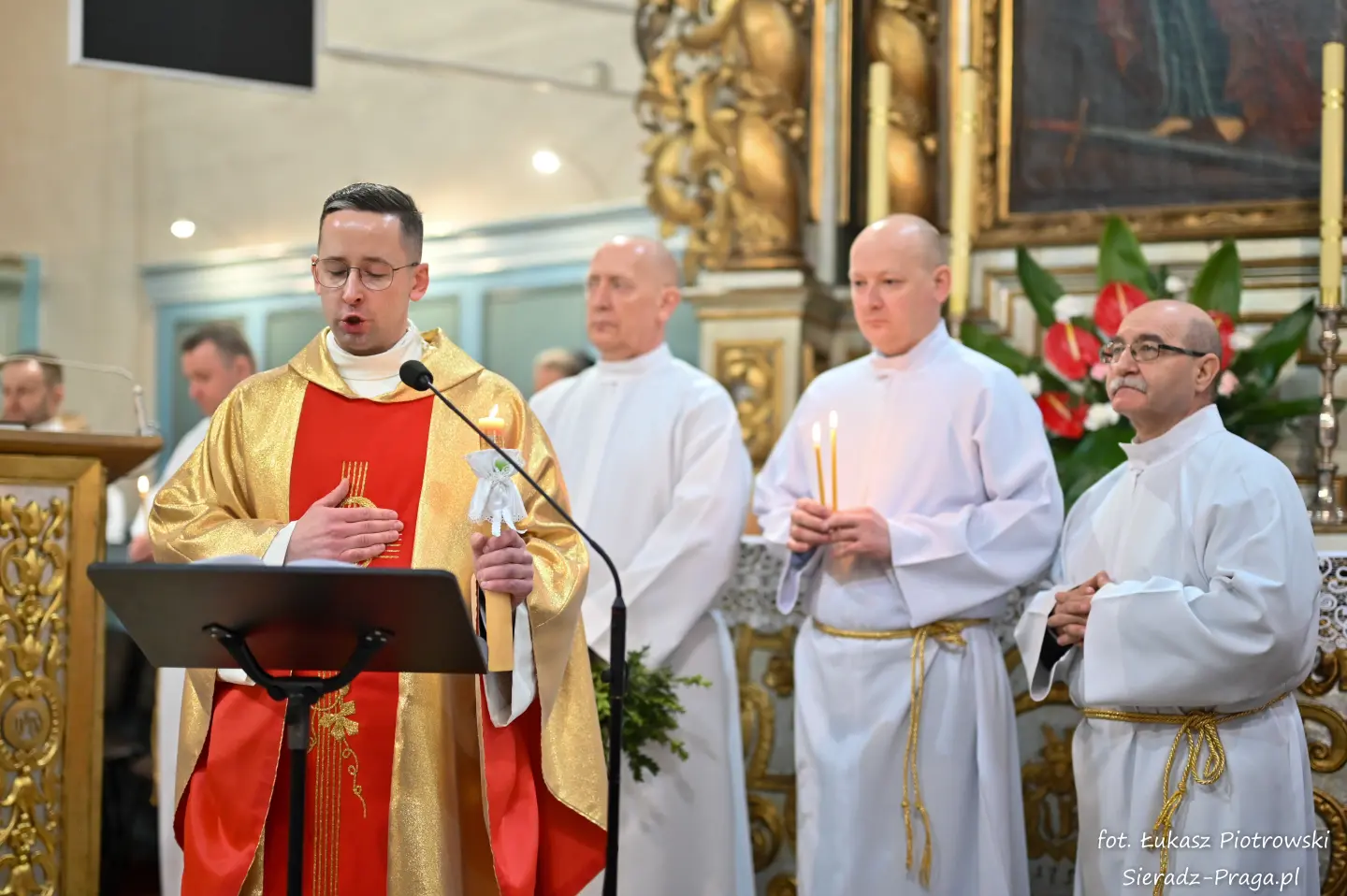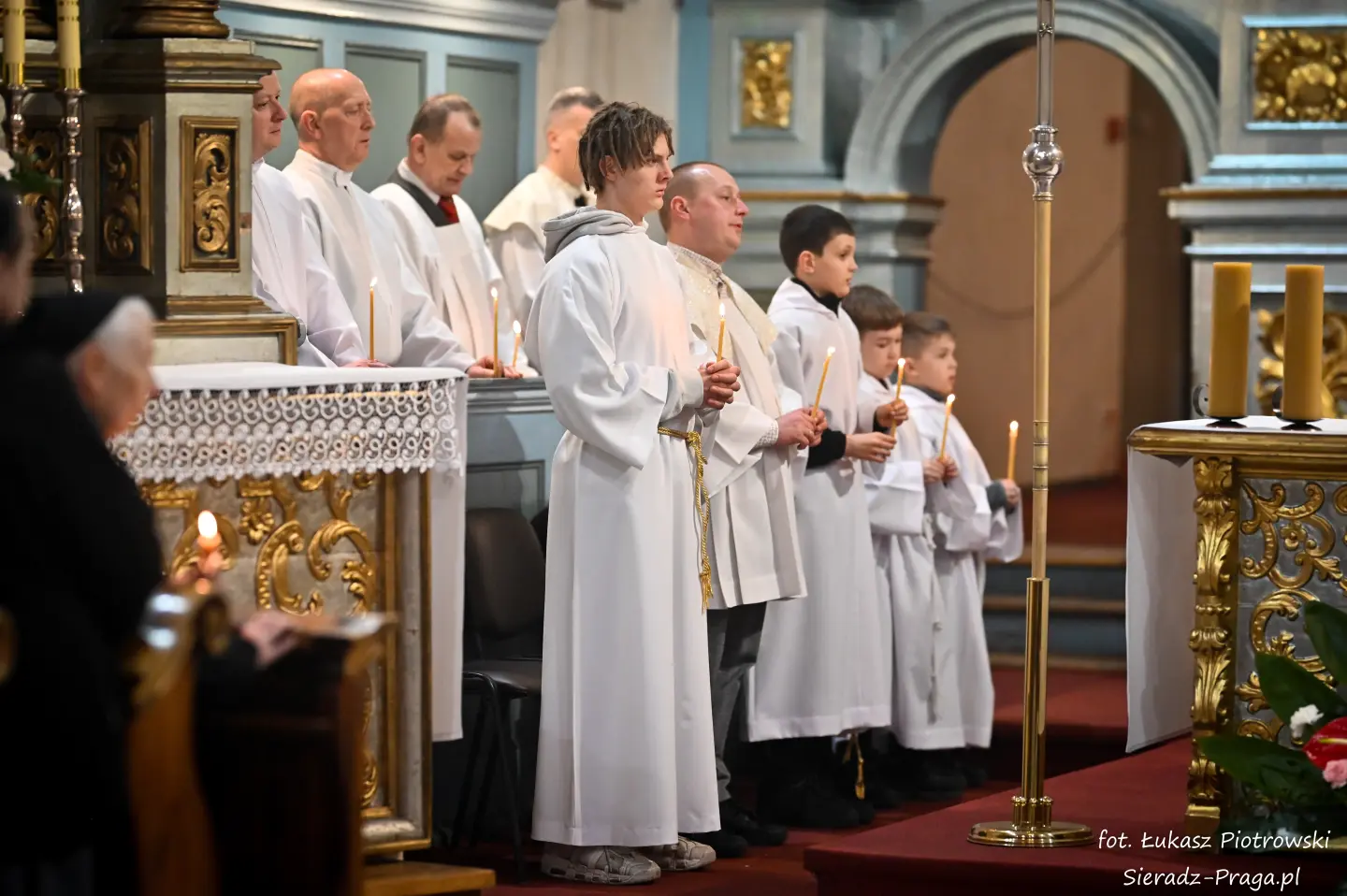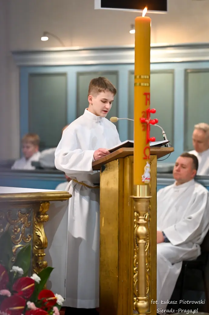 Liturgii, nasyconej powagą i nadzieją, przewodniczył ks. Karol Mazurek z KUL-u, prowadząc nas – tak jak w poprzednie dni – ku sercu paschalnej tajemnicy. Naszą modlitwę ku niebu niosły głosy scholi klasztornej pod dyrekcją s. Aliny Kulik. Ich kunszt wokalny nie był jedynie ozdobą, lecz autentycznym uwielbieniem, które kruszyło mury serc. Piękna i pokorna postawa licznej służby ołtarza i asysty była żywym świadectwem wiary, przypominając, że służba Chrystusowi jest najwyższym zaszczytem.