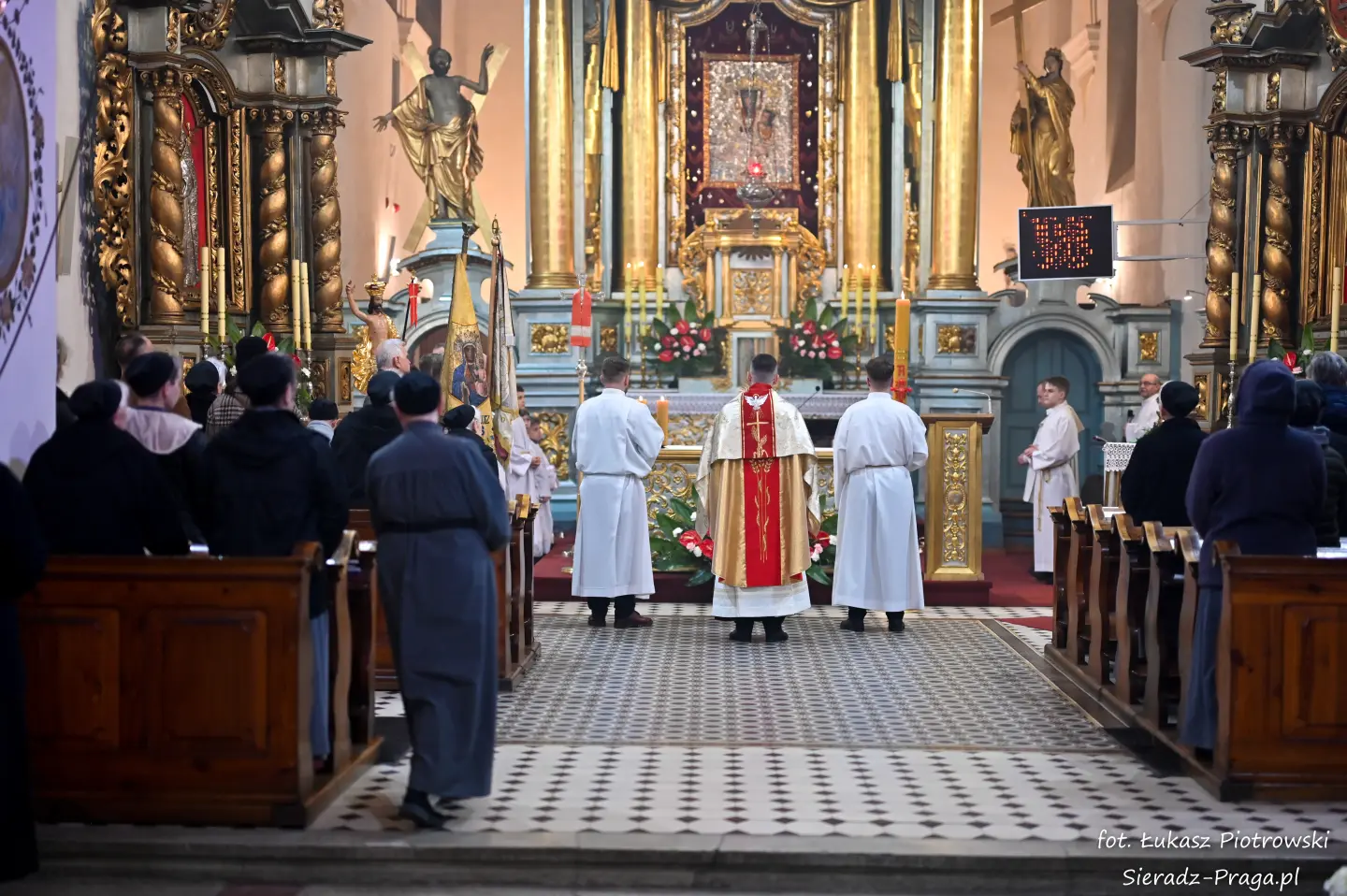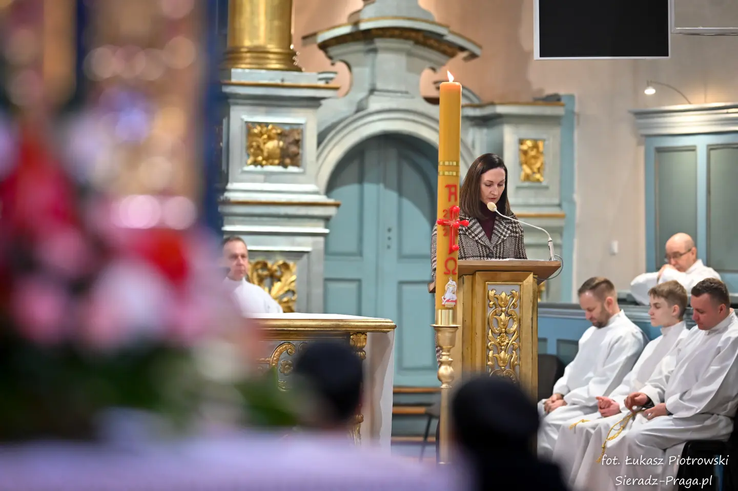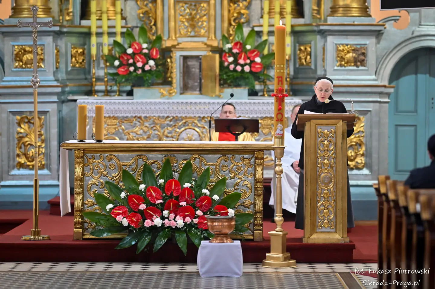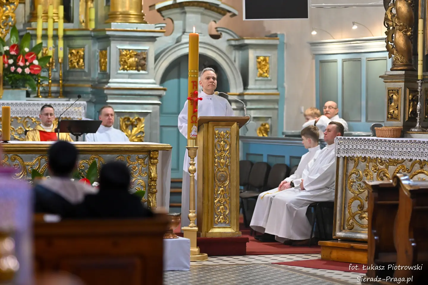 Liturgii, nasyconej powagą i nadzieją, przewodniczył ks. Karol Mazurek z KUL-u, prowadząc nas – tak jak w poprzednie dni – ku sercu paschalnej tajemnicy. Naszą modlitwę ku niebu niosły głosy scholi klasztornej pod dyrekcją s. Aliny Kulik. Ich kunszt wokalny nie był jedynie ozdobą, lecz autentycznym uwielbieniem, które kruszyło mury serc. Piękna i pokorna postawa licznej służby ołtarza i asysty była żywym świadectwem wiary, przypominając, że służba Chrystusowi jest najwyższym zaszczytem.
