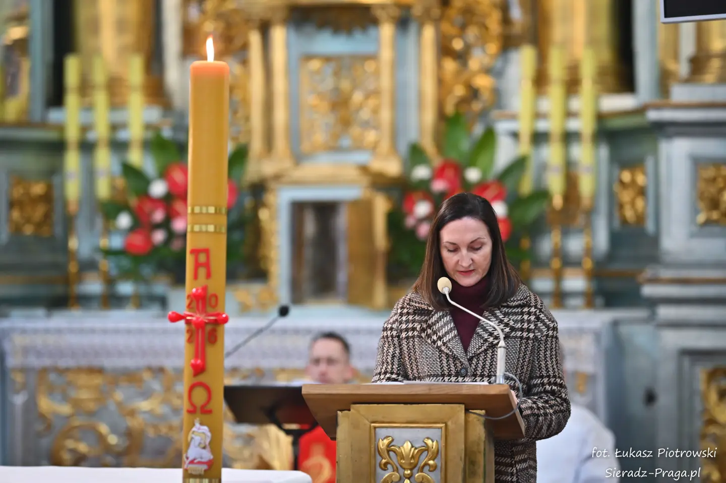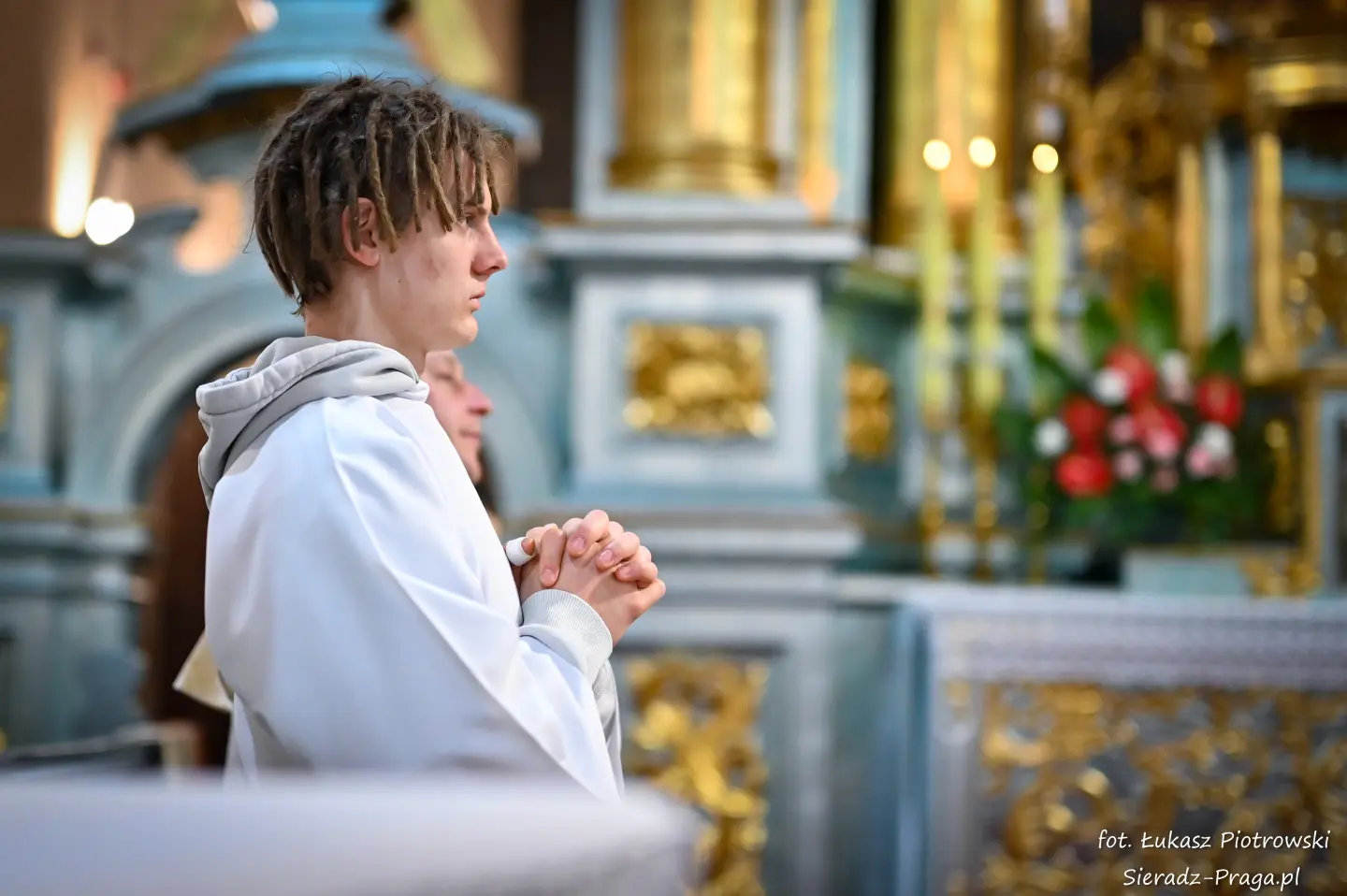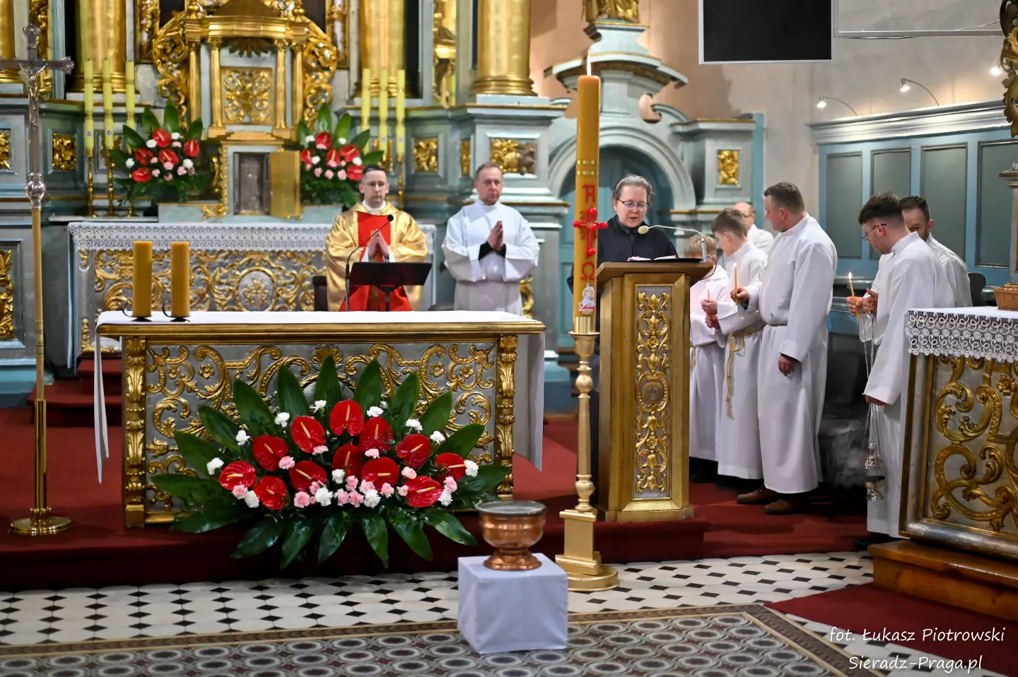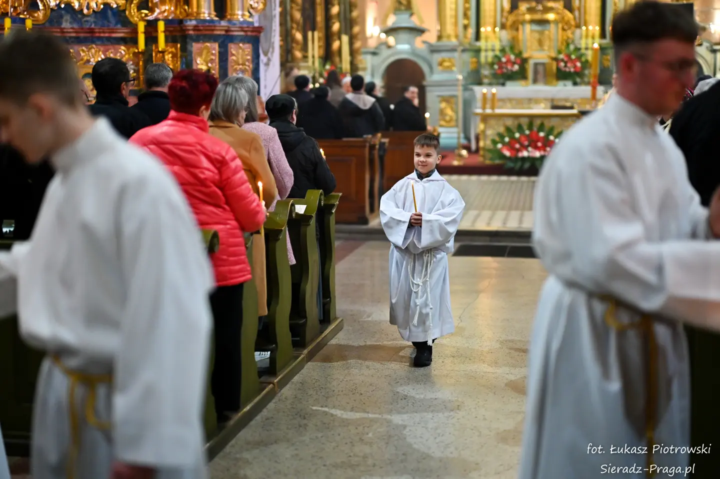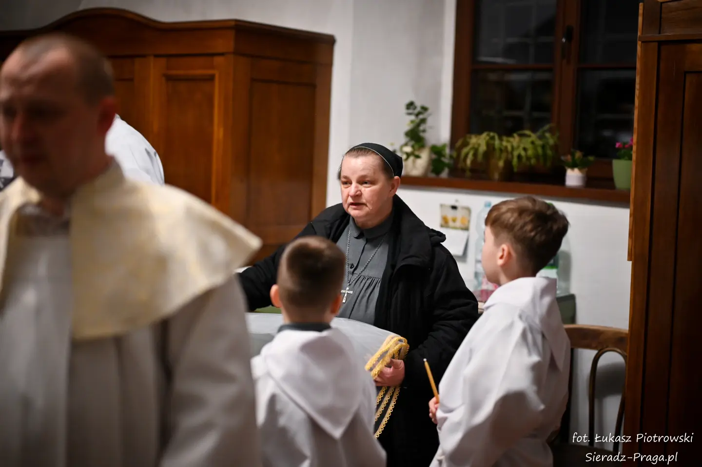 Liturgii, nasyconej powagą i nadzieją, przewodniczył ks. Karol Mazurek z KUL-u, prowadząc nas – tak jak w poprzednie dni – ku sercu paschalnej tajemnicy. Naszą modlitwę ku niebu niosły głosy scholi klasztornej pod dyrekcją s. Aliny Kulik. Ich kunszt wokalny nie był jedynie ozdobą, lecz autentycznym uwielbieniem, które kruszyło mury serc. Piękna i pokorna postawa licznej służby ołtarza i asysty była żywym świadectwem wiary, przypominając, że służba Chrystusowi jest najwyższym zaszczytem.