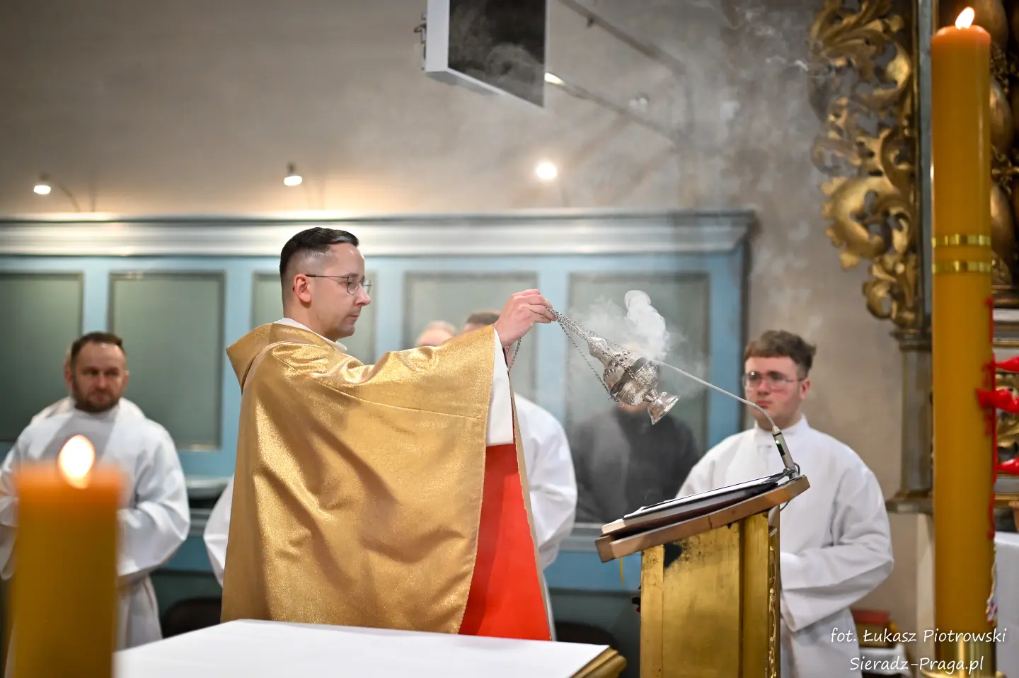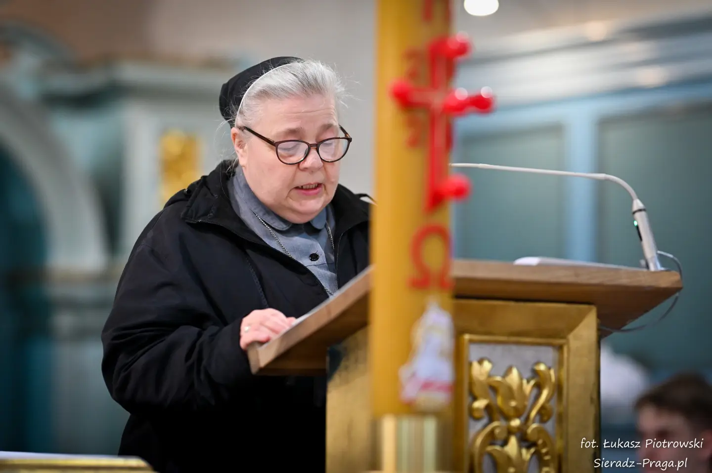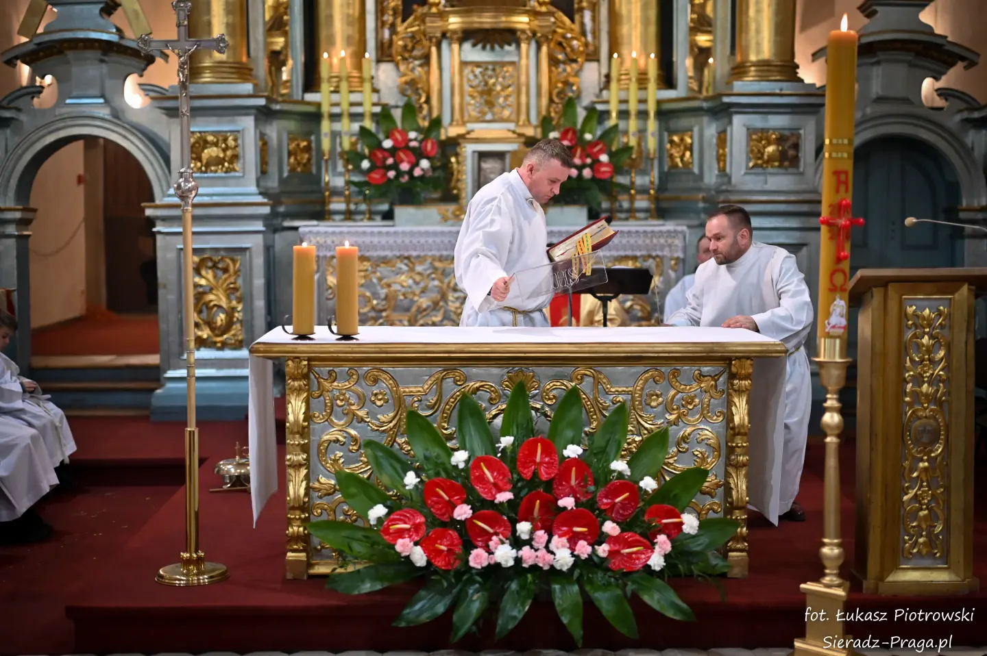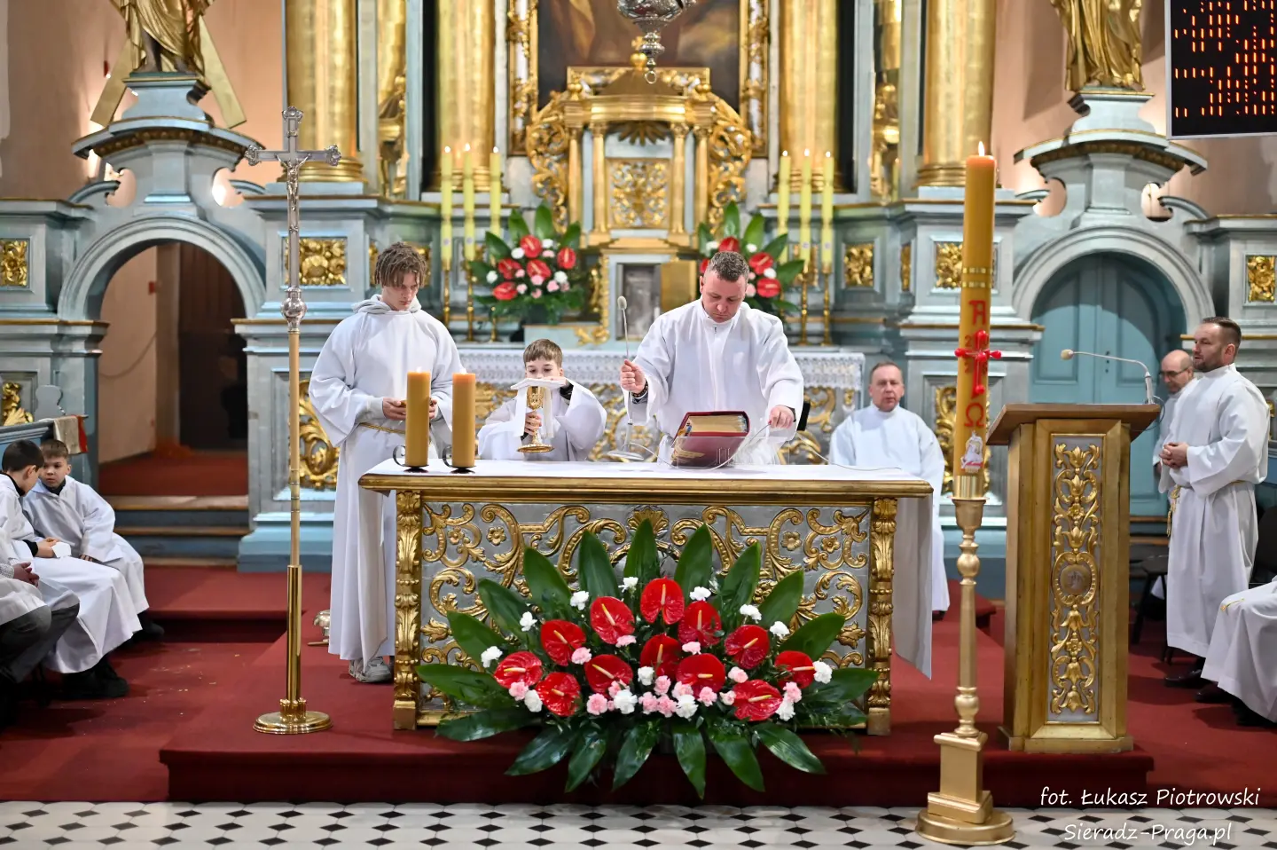 Liturgii, nasyconej powagą i nadzieją, przewodniczył ks. Karol Mazurek z KUL-u, prowadząc nas – tak jak w poprzednie dni – ku sercu paschalnej tajemnicy. Naszą modlitwę ku niebu niosły głosy scholi klasztornej pod dyrekcją s. Aliny Kulik. Ich kunszt wokalny nie był jedynie ozdobą, lecz autentycznym uwielbieniem, które kruszyło mury serc. Piękna i pokorna postawa licznej służby ołtarza i asysty była żywym świadectwem wiary, przypominając, że służba Chrystusowi jest najwyższym zaszczytem.