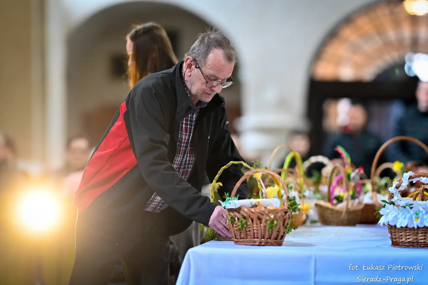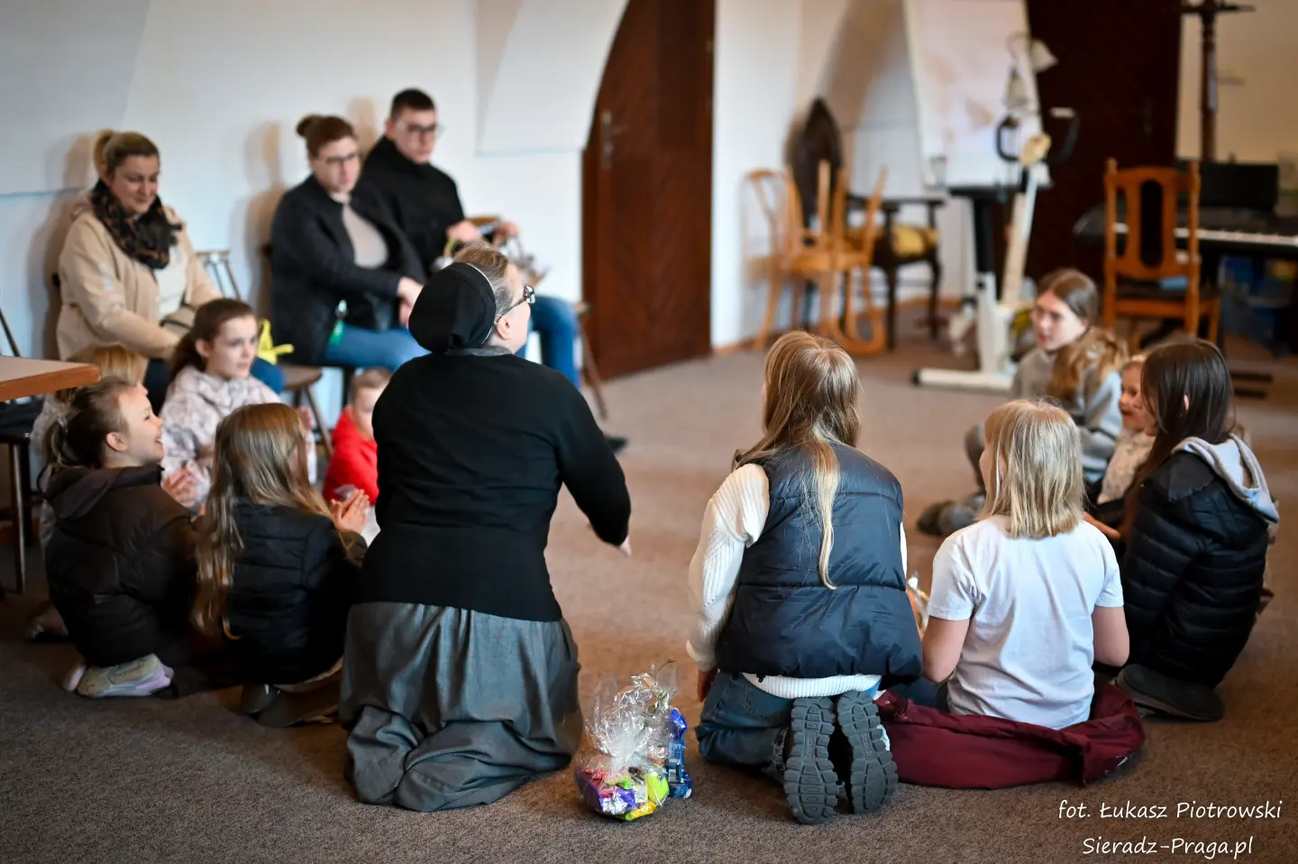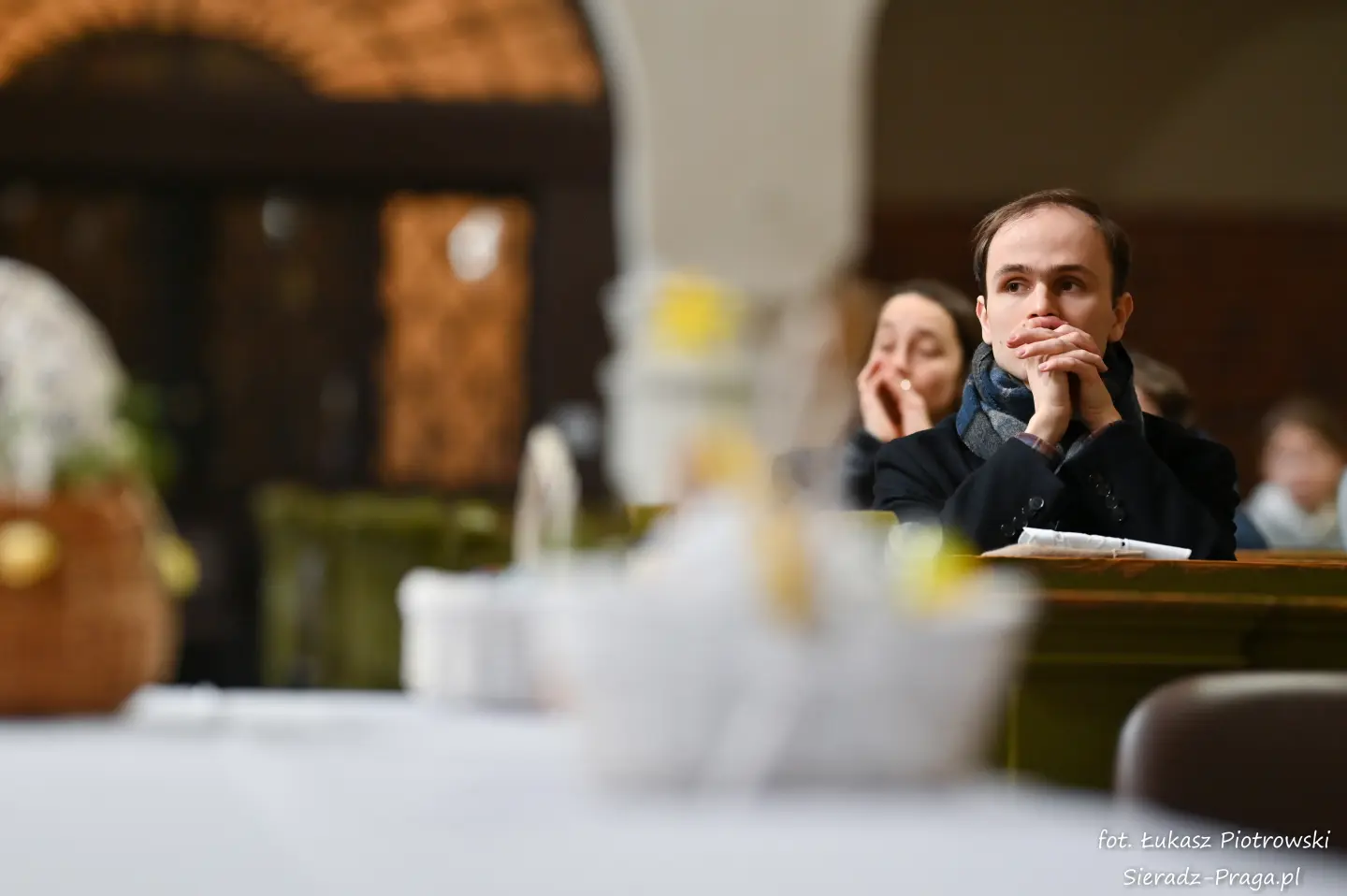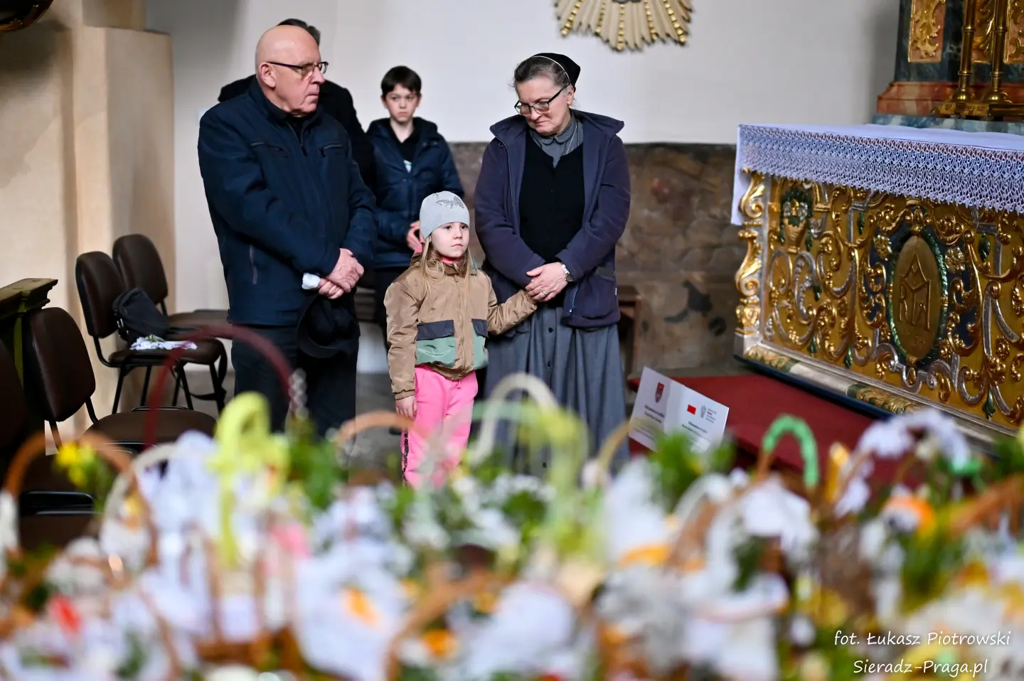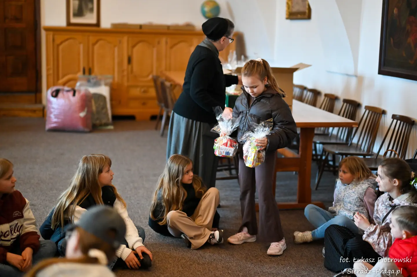 W tym szczególnym czasie pragnę zaprosić do kontemplacji chwil utrwalonych w klasztorze Sióstr Urszulanek, gdzie ks. Zygmunt Majdziński, sprawujący duchową opiekę nad wspólnotą, pobłogosławił to, co znajdzie się na wielkanocnych stołach. To sacrum przeplata się z czystą radością życia, co widać szczególnie w spotkaniu s. Elżbiety Kuriatto z dziećmi z jej scholi. Siostra Elżbieta, obdarzona niezwykłym darem serca, z matczyną czułością prowadzi te młode dusze ku Bogu, ucząc je, jak swoim śpiewem uwielbiać Stwórcę w sieradzkiej bazylice. Słodkie upominki, które otrzymały dzieci, stały się jedynie skromnym znakiem obfitości łask, jakimi obdarza nas Zmartwychwstały.