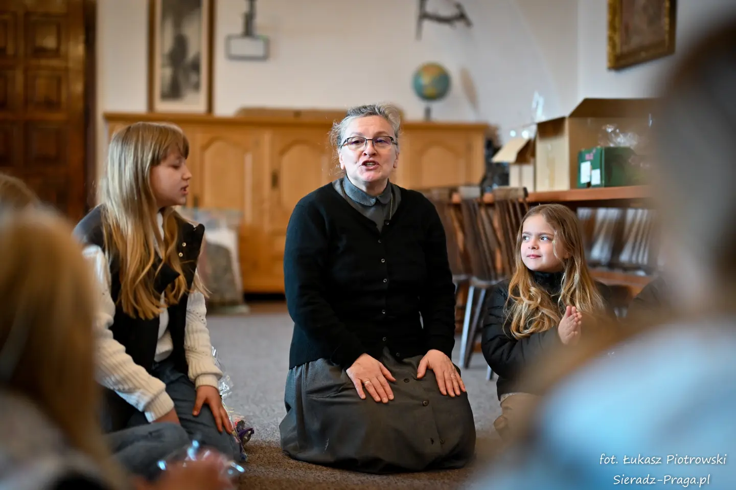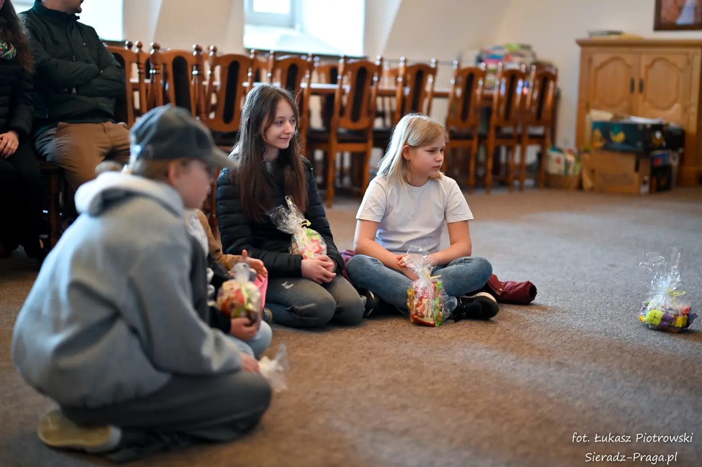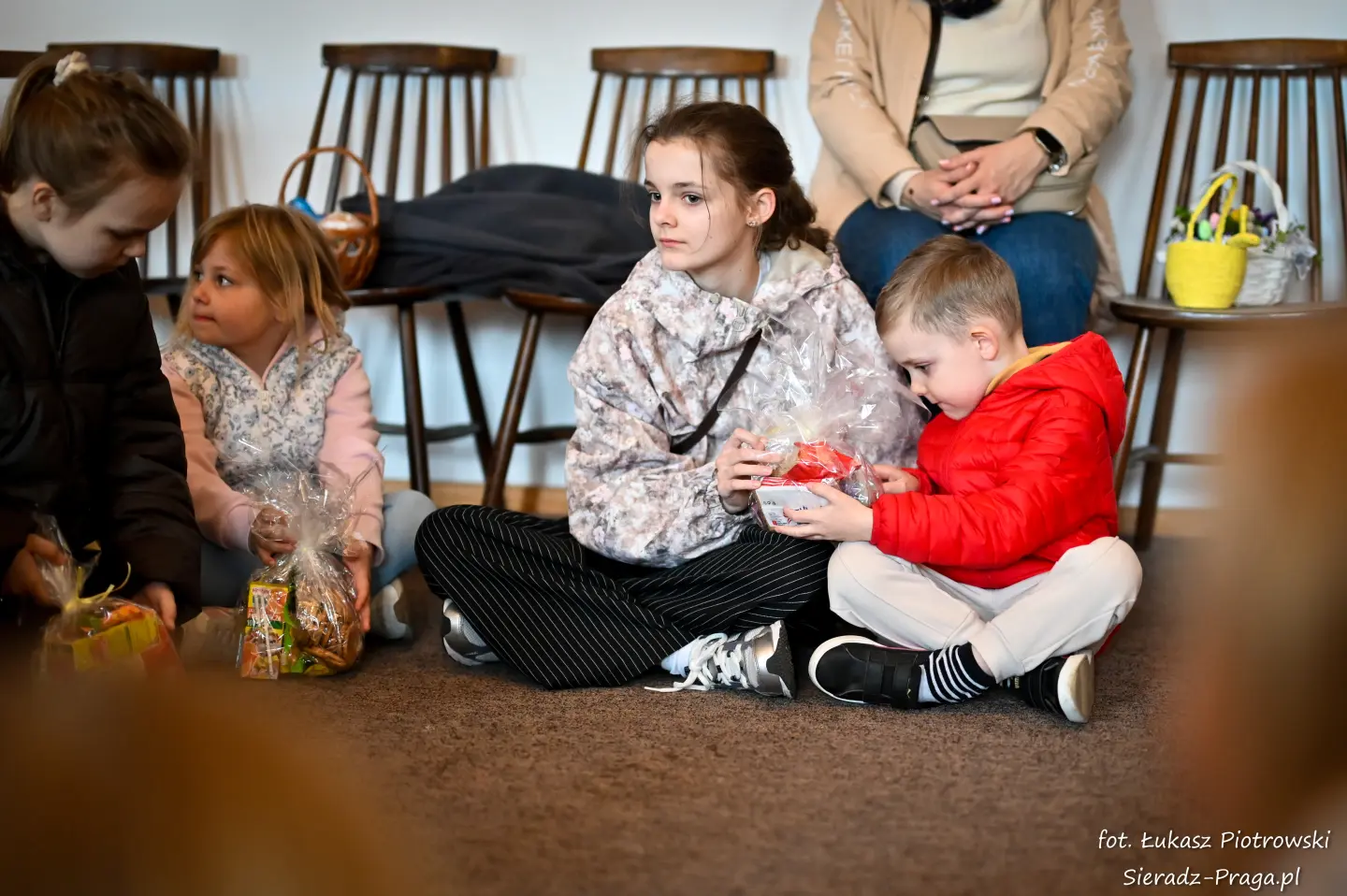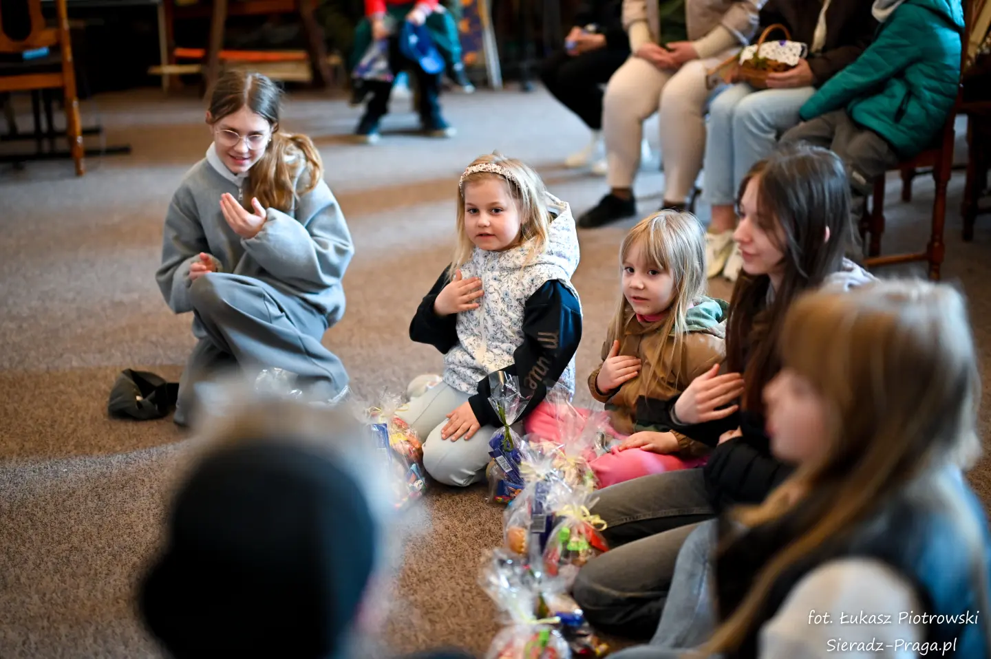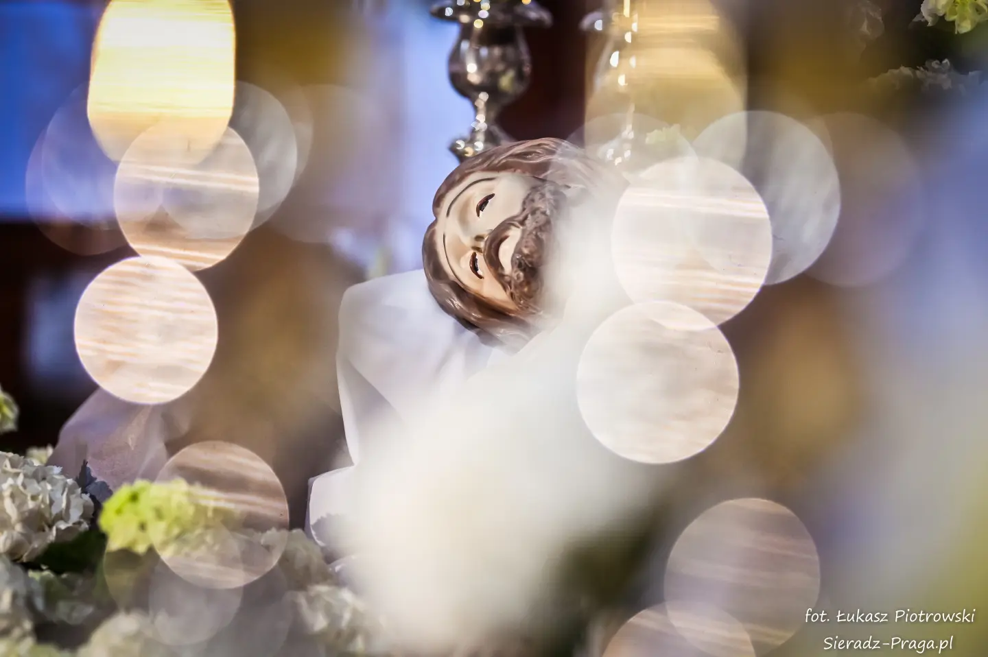 W tym szczególnym czasie pragnę zaprosić do kontemplacji chwil utrwalonych w klasztorze Sióstr Urszulanek, gdzie ks. Zygmunt Majdziński, sprawujący duchową opiekę nad wspólnotą, pobłogosławił to, co znajdzie się na wielkanocnych stołach. To sacrum przeplata się z czystą radością życia, co widać szczególnie w spotkaniu s. Elżbiety Kuriatto z dziećmi z jej scholi. Siostra Elżbieta, obdarzona niezwykłym darem serca, z matczyną czułością prowadzi te młode dusze ku Bogu, ucząc je, jak swoim śpiewem uwielbiać Stwórcę w sieradzkiej bazylice. Słodkie upominki, które otrzymały dzieci, stały się jedynie skromnym znakiem obfitości łask, jakimi obdarza nas Zmartwychwstały.