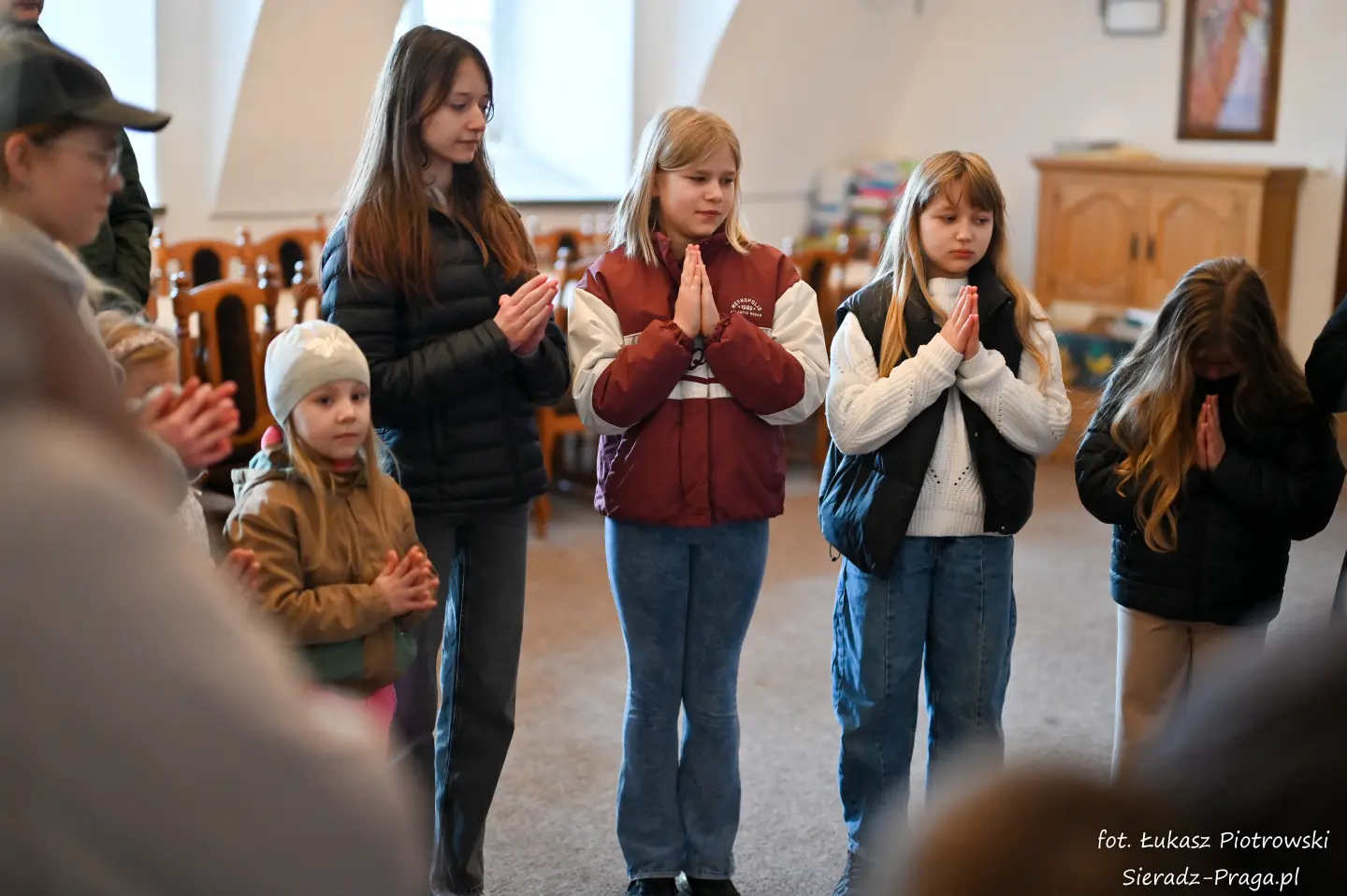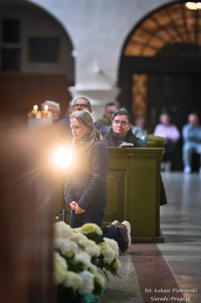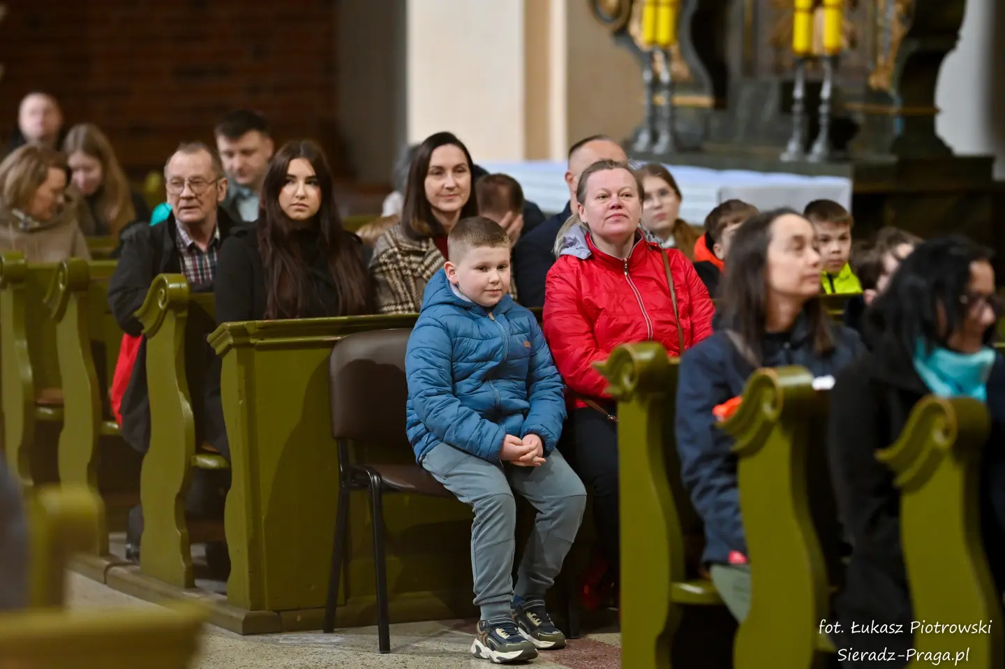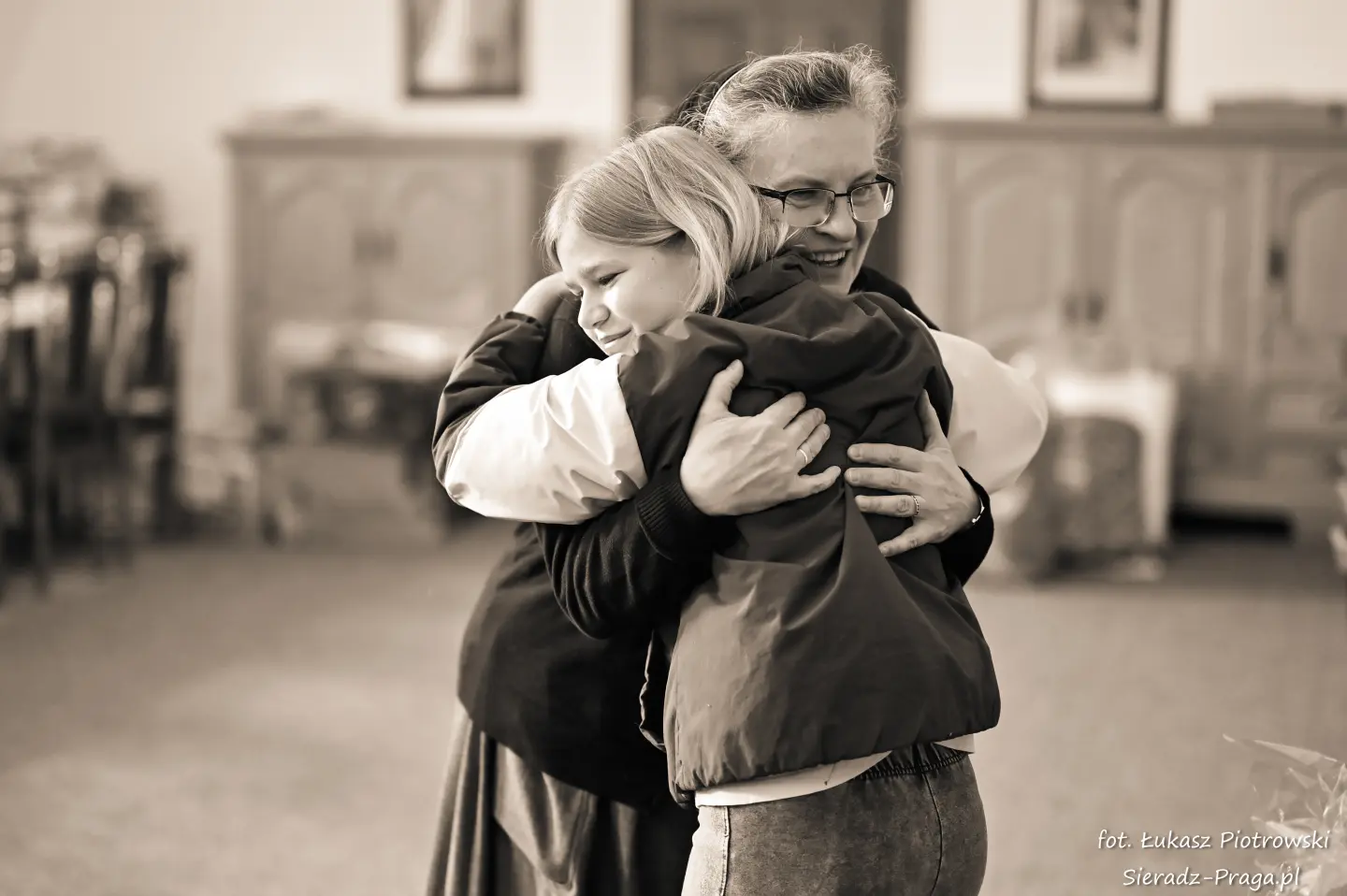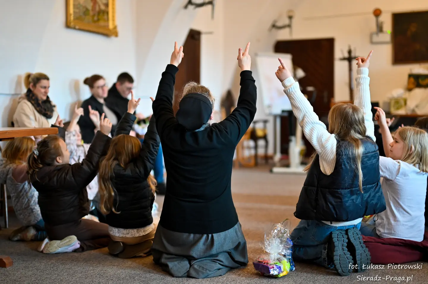 W tym szczególnym czasie pragnę zaprosić do kontemplacji chwil utrwalonych w klasztorze Sióstr Urszulanek, gdzie ks. Zygmunt Majdziński, sprawujący duchową opiekę nad wspólnotą, pobłogosławił to, co znajdzie się na wielkanocnych stołach. To sacrum przeplata się z czystą radością życia, co widać szczególnie w spotkaniu s. Elżbiety Kuriatto z dziećmi z jej scholi. Siostra Elżbieta, obdarzona niezwykłym darem serca, z matczyną czułością prowadzi te młode dusze ku Bogu, ucząc je, jak swoim śpiewem uwielbiać Stwórcę w sieradzkiej bazylice. Słodkie upominki, które otrzymały dzieci, stały się jedynie skromnym znakiem obfitości łask, jakimi obdarza nas Zmartwychwstały.