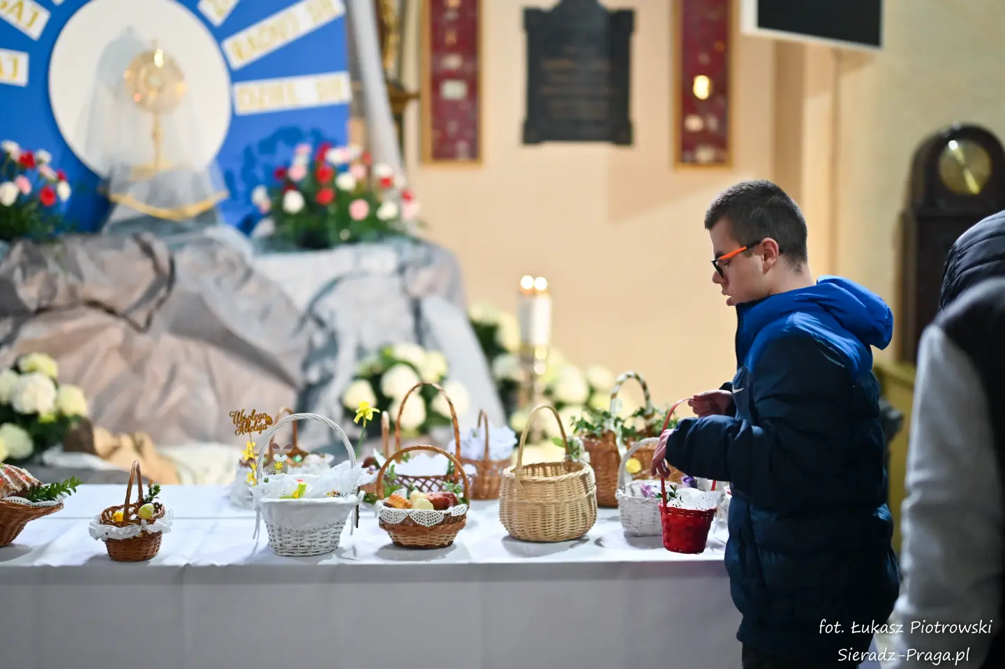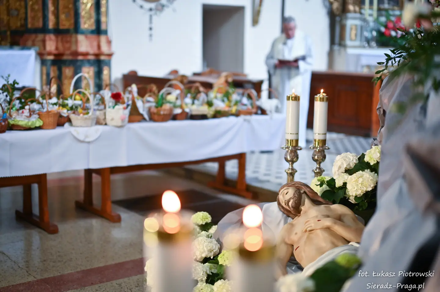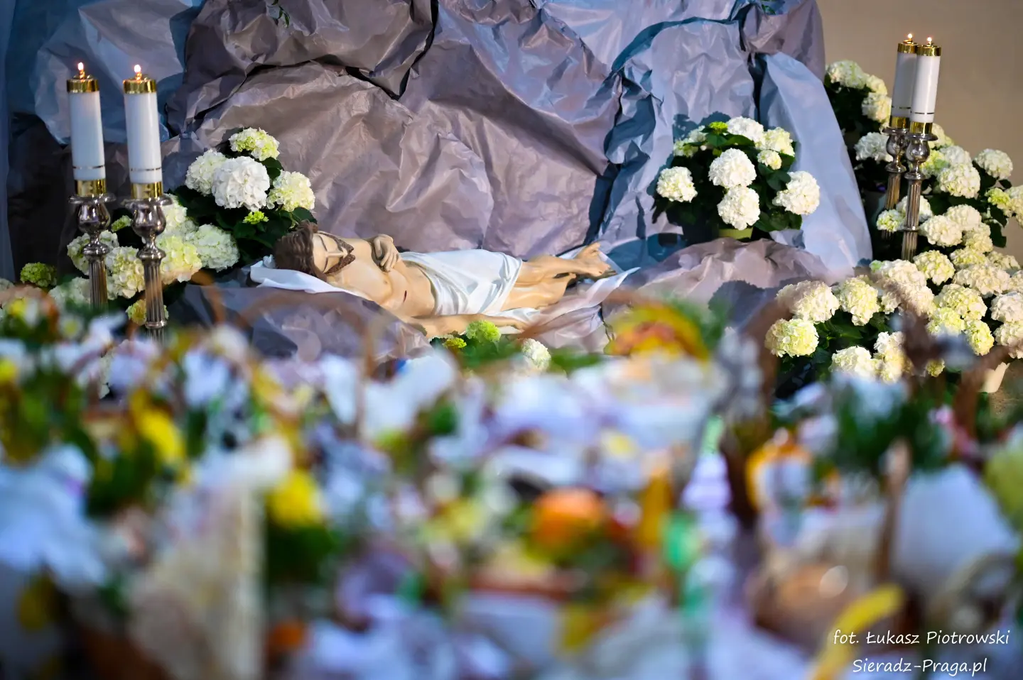 Pamiętajmy, że poświęcenie pokarmów to przede wszystkim manifestacja naszej wiary i ufności w zwycięstwo życia nad mrokiem. Każdy z poświęconych pokarmów przemawia do nas własnym, duchowym językiem: jajko zwiastuje tajemnicę życia rodzącego się na nowo, baranek ogłasza triumf miłości nad śmiercią, a chleb – owoc trudu rąk ludzkich – staje się znakiem obecności Chrystusa, gwarantującym nam nie tylko doczesny dobrobyt, ale i pokarm na życie wieczne. Sól przypomina o potrzebie oczyszczenia, chrzan o sile ducha niezbędnej w codziennych zmaganiach, a wędliny i ciasta są wyrazem radości z zakończenia postu i obfitości, jaką przygotował dla nas Pan. Nawet woda, ser czy pieprz przypominają o naszym chrzcie, więzi z całym stworzeniem i gorzkich doświadczeniach, które w Bogu znajdują swoje ukojenie. Niech ten fotoreportaż, który otwieramy spojrzeniem na Jezusa spoczywającego w grobie i adoracją Najświętszego Sakramentu, stanie się dla nas okazją do wyciszenia. W tej białej Hostii, ukrytej przed światem, bije prawdziwe, żywe Serce Zbawiciela, który przeprowadza nas ze śmierci do życia.