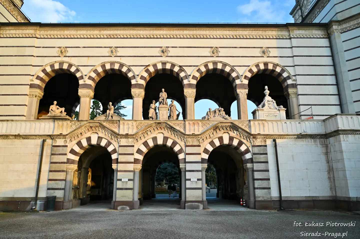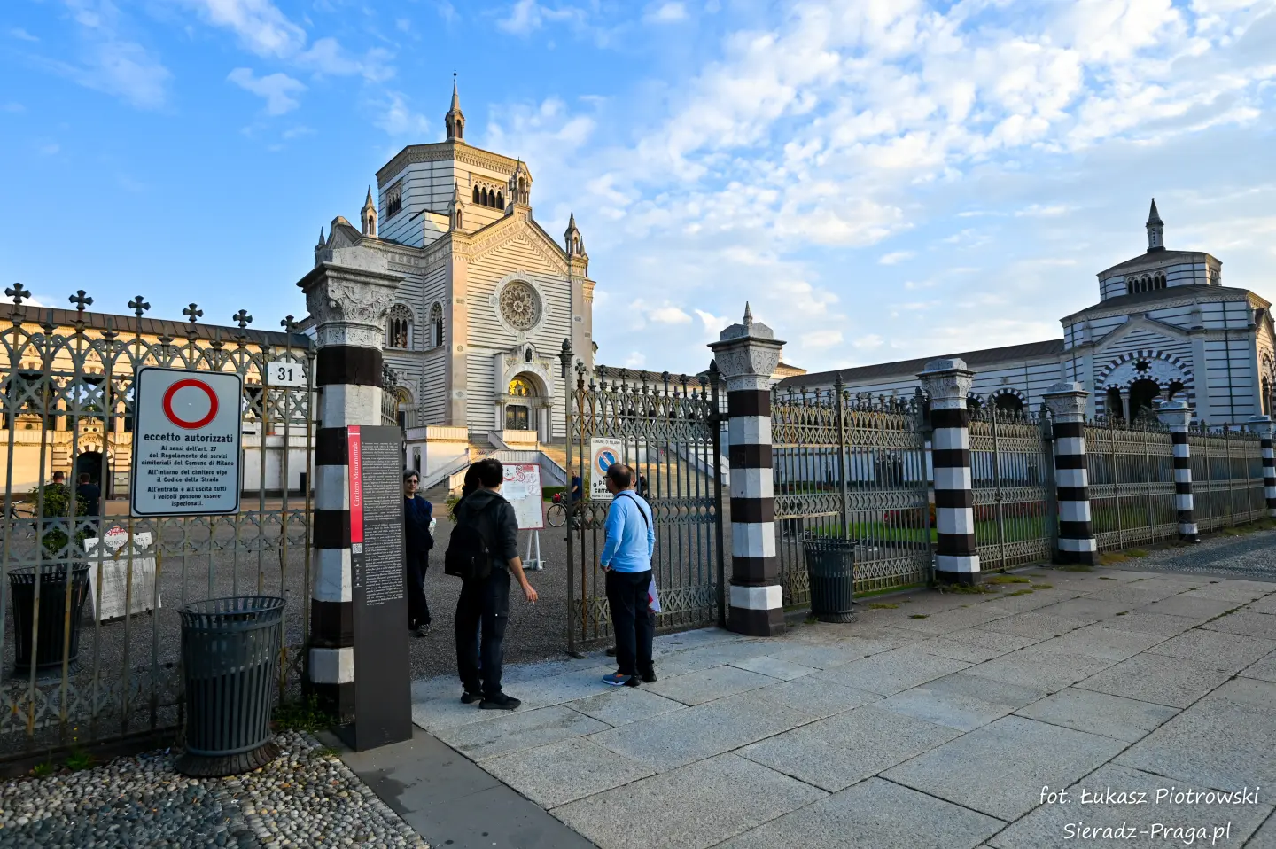 W swoim życiu byłem już na wielu cmentarzach i to nie tylko tych, które są najbardziej znane w Polsce. Jednak ta ogromna mediolańska nekropolia, którą nawiedziłem 23 września 2025 roku, przerosła moje najśmielsze oczekiwania. Już wtedy, kiedy stanąłem przed jeszcze zamkniętą bramą cmentarza, uzmysłowiłem sobie, że będzie to dla mnie jakże niezwykła i niezapomniana podróż w czasie. Kiedy w końcu nastała godzina 8:00, brama cmentarza została dla wszystkich otwarta. Zdziwiłem się jednak bardzo, że tak mało osób przyszło odwiedzić to miejsce. Kilkaset metrów dalej za murami cmentarza miasto tętniło życiem, a na cmentarzu byłem praktycznie sam. Jakże dziwnie się wtedy poczułem.